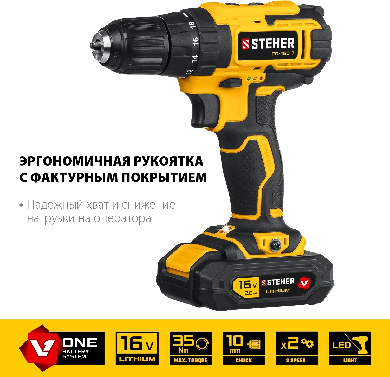 Дрель-шуруповерт STEHER 16 В 35 Н·м 1 АКБ 2 А·ч