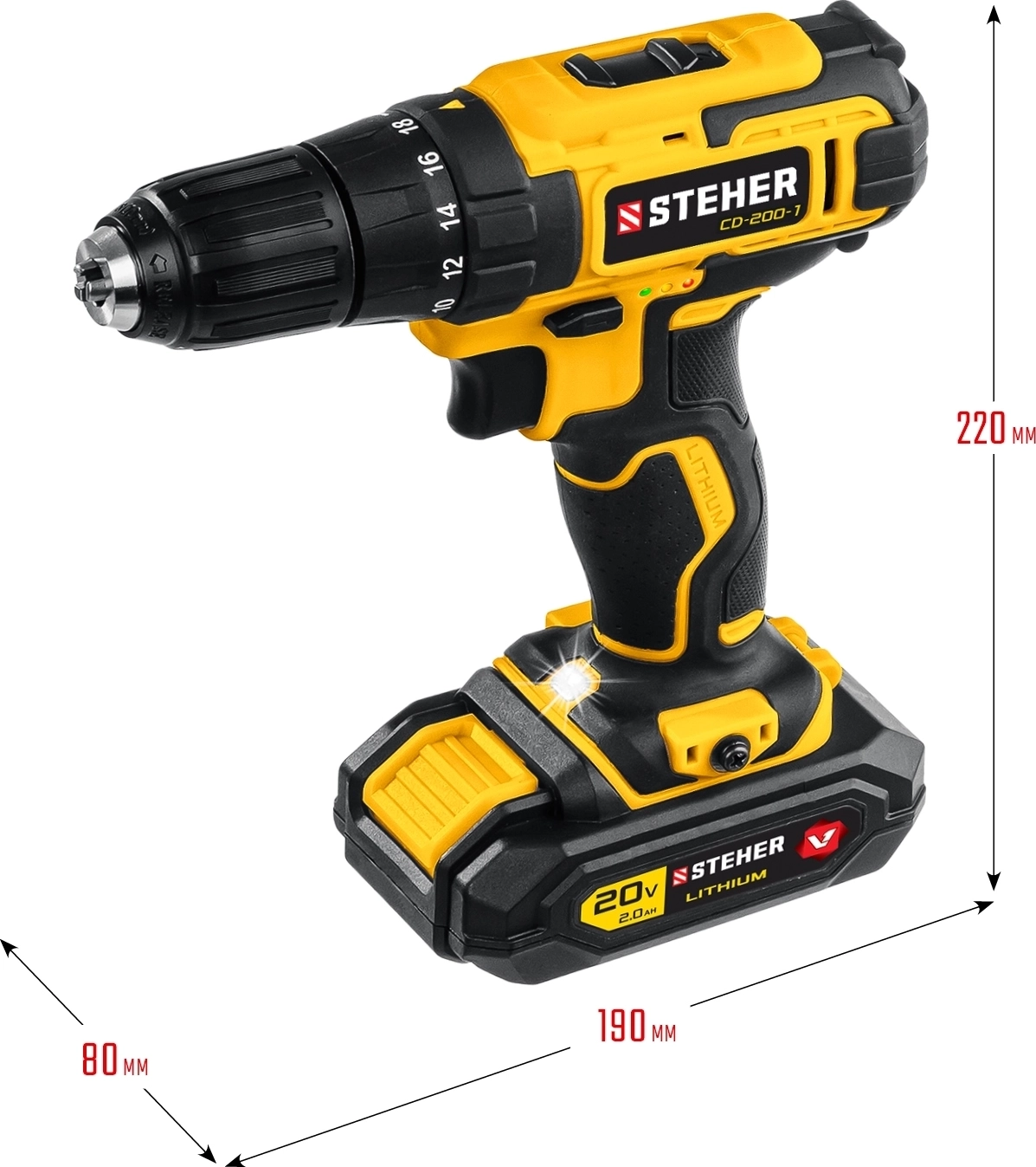Дрель-шуруповерт STEHER V1 20 В 40 Н·м 1 АКБ 2 А·ч