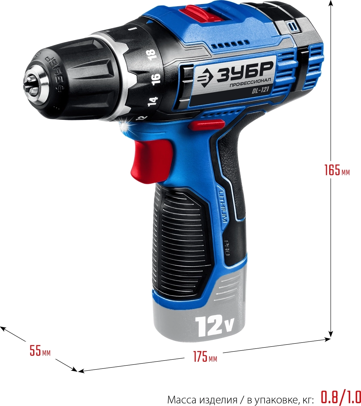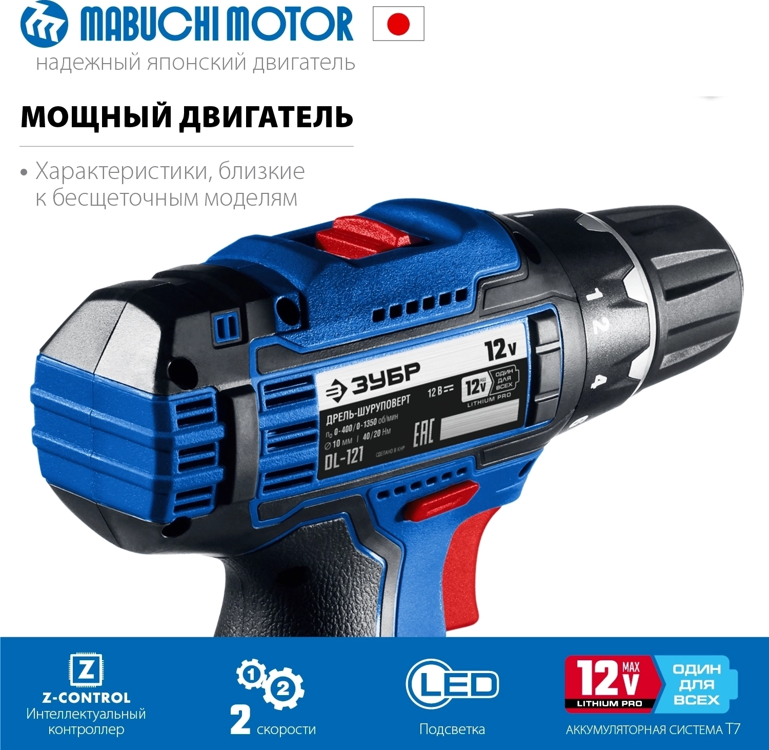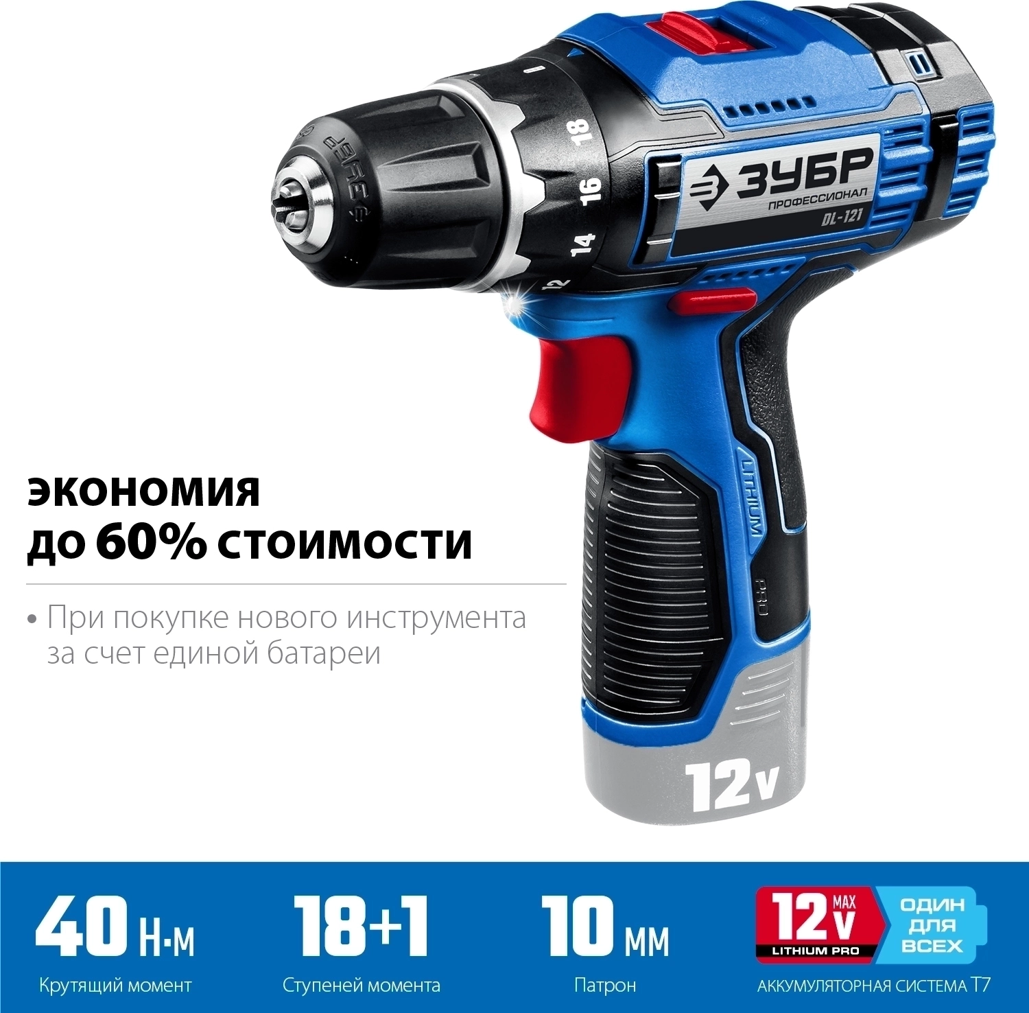 Дрель-шуруповерт ЗУБР 12 В 40 Н·м без АКБ тип Т7