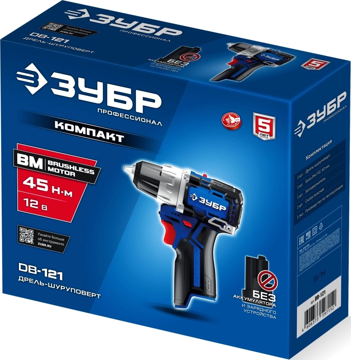 Дрель-шуруповерт ЗУБР КОМПАКТ 12 В 45 Н·м без АКБ тип Т7