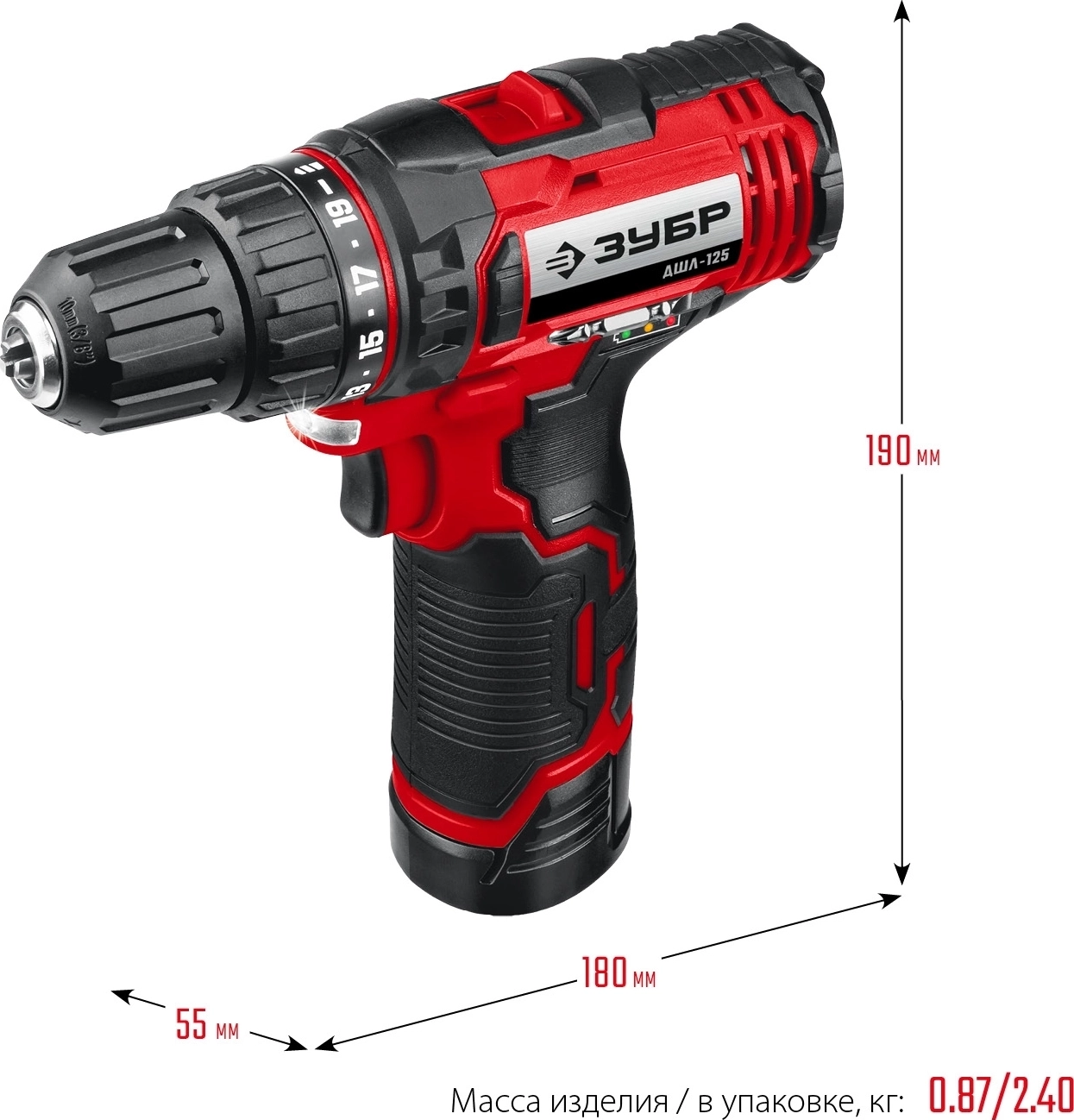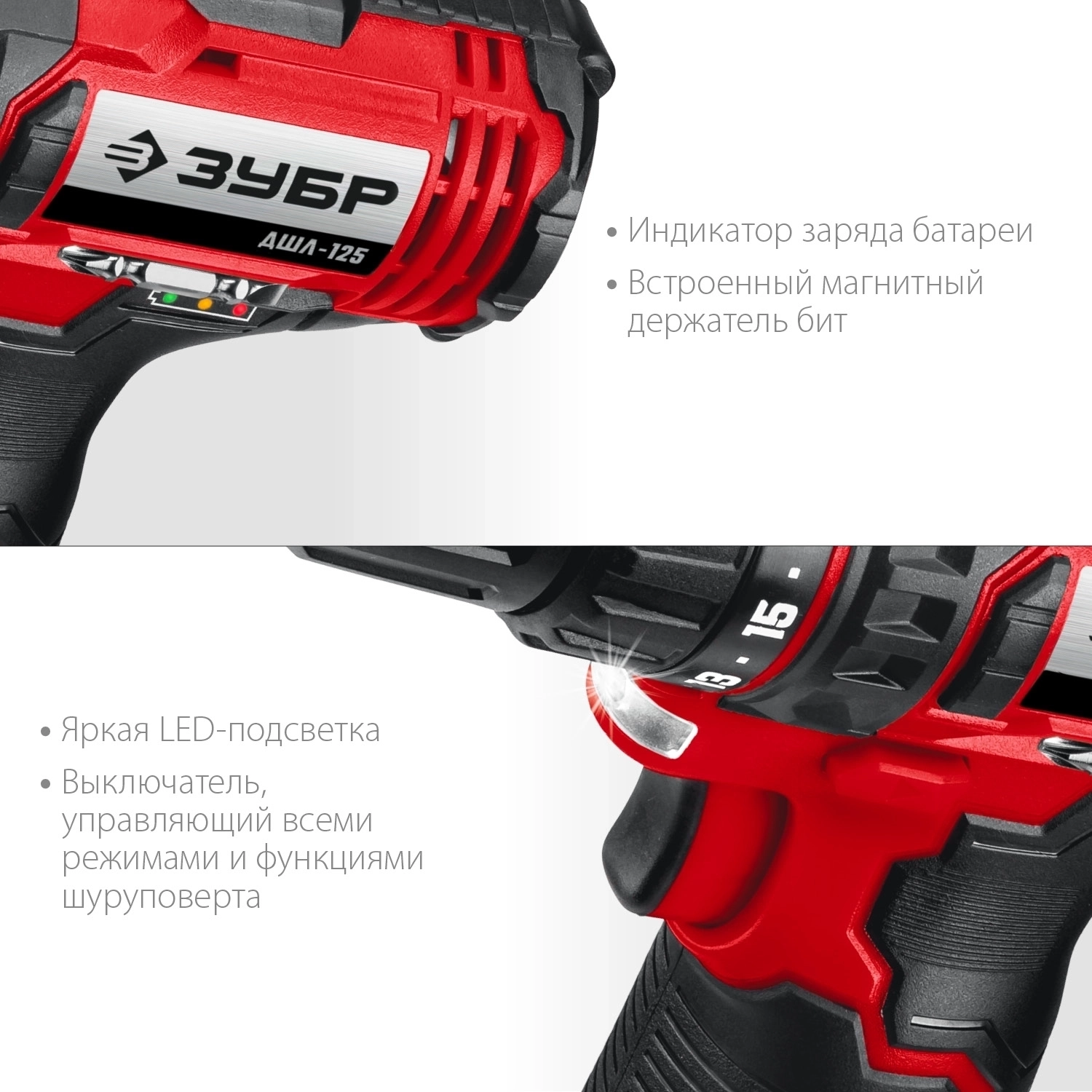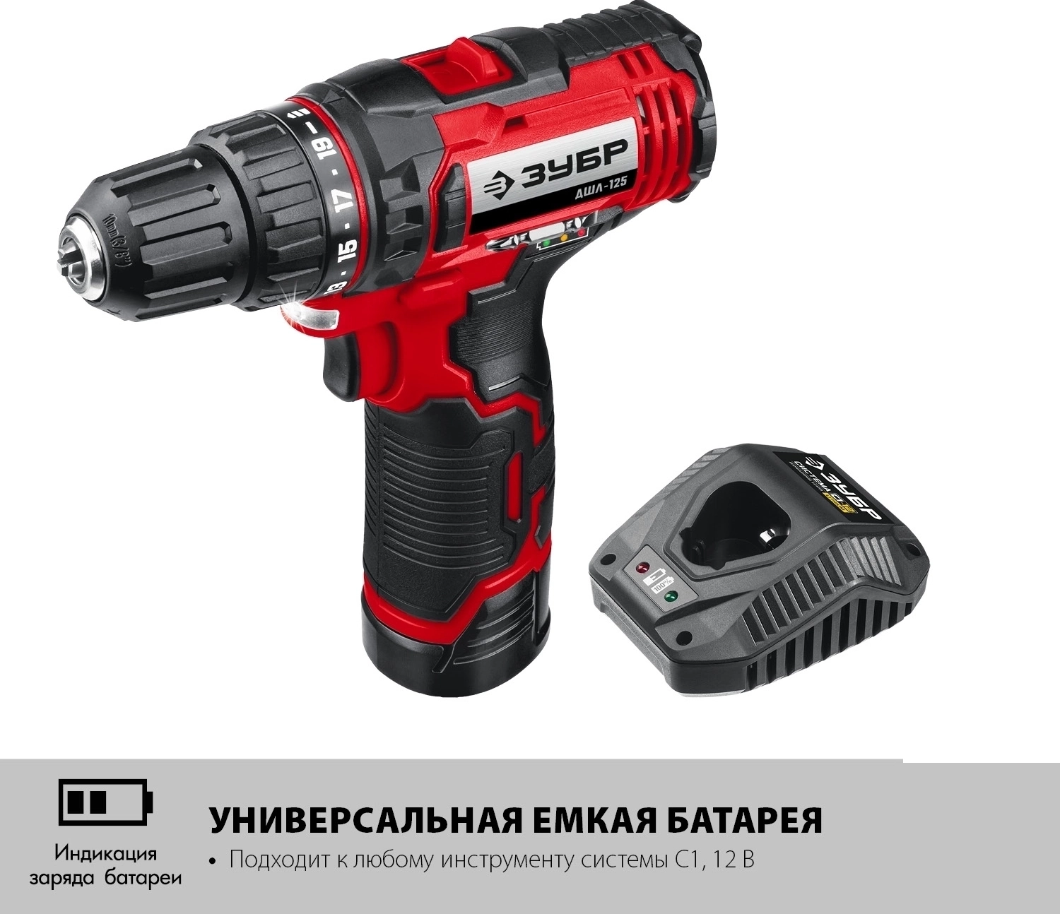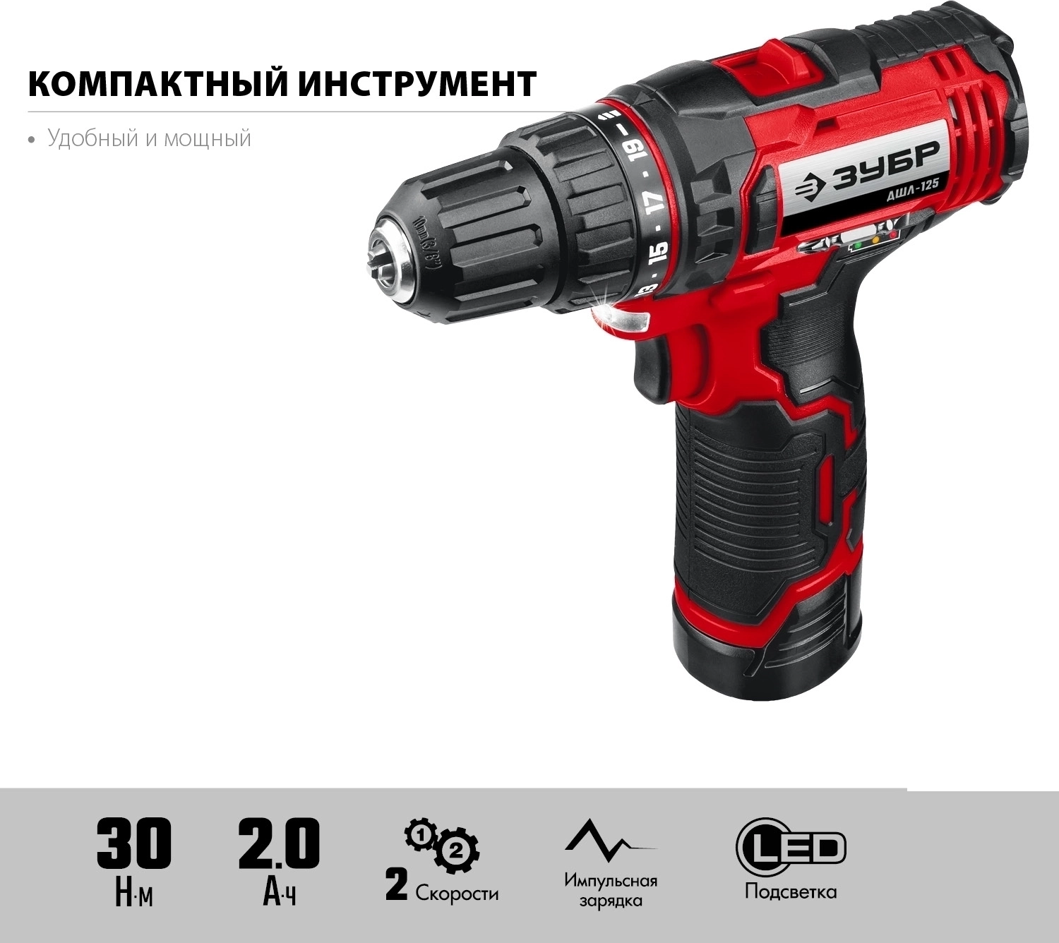 Дрель-шуруповерт ЗУБР С1-12 12 В 30 Н·м 2 АКБ 2 А·ч