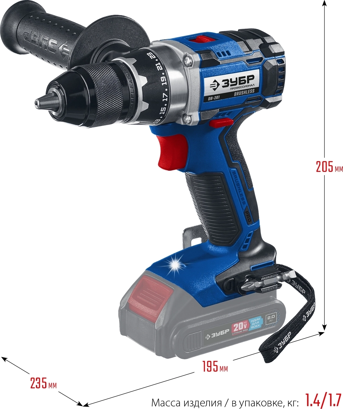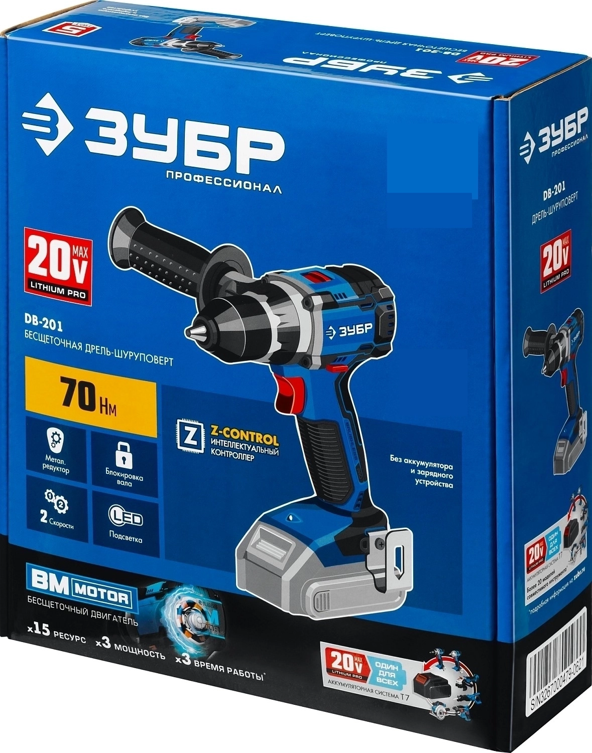 Дрель-шуруповерт бесщеточная ЗУБР Т7 20 В 70 Н·м без АКБ