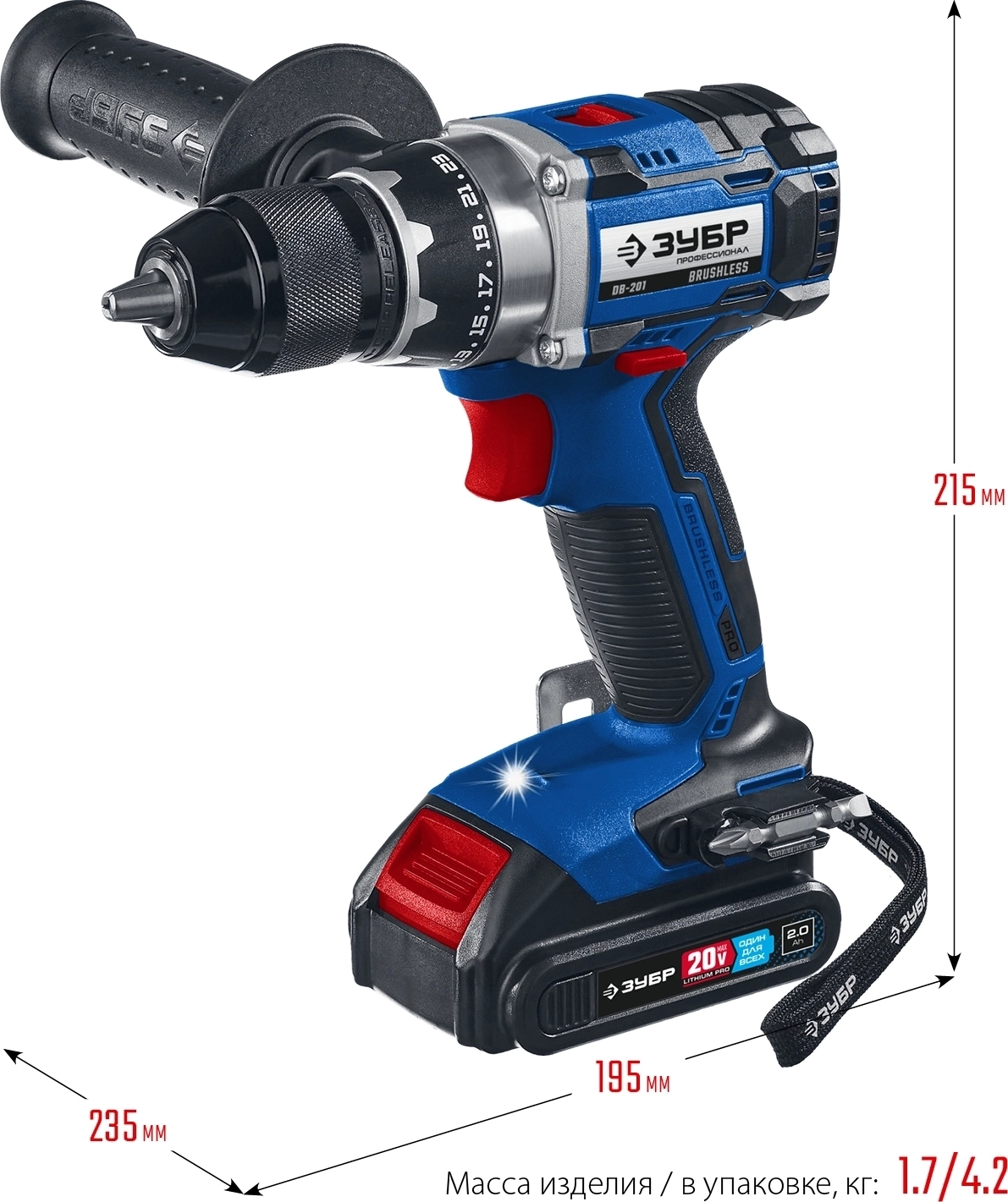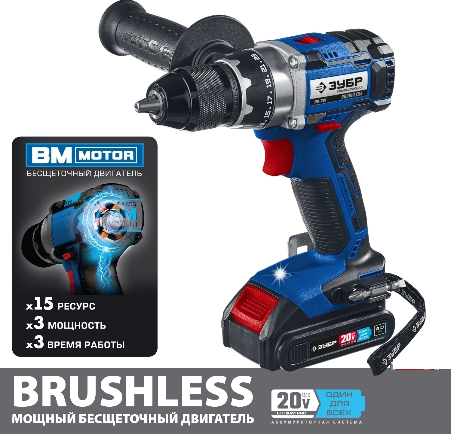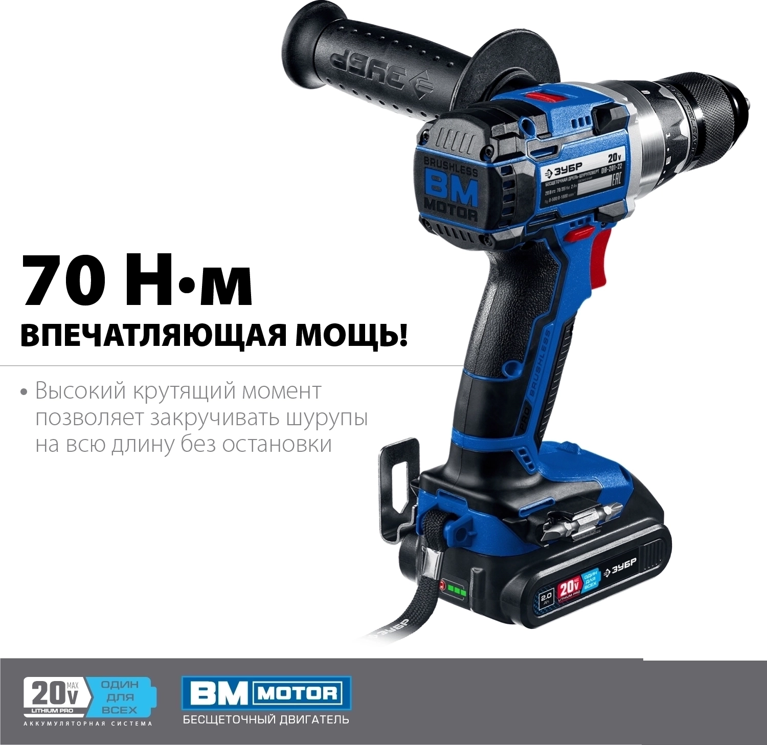 Дрель-шуруповерт бесщеточная ЗУБР Т7 20 В 70 Н·м 2 АКБ 2 А·ч кейс