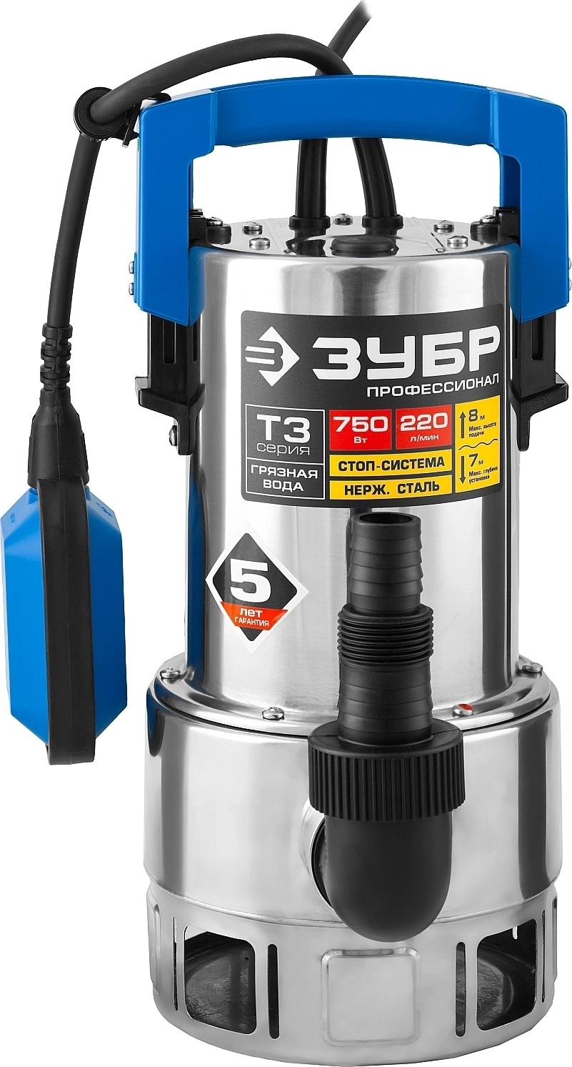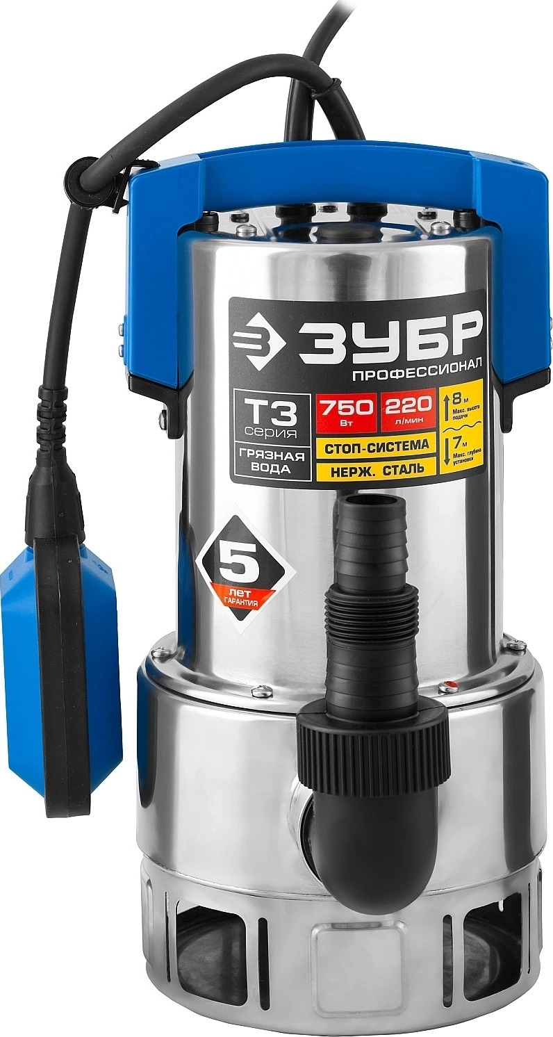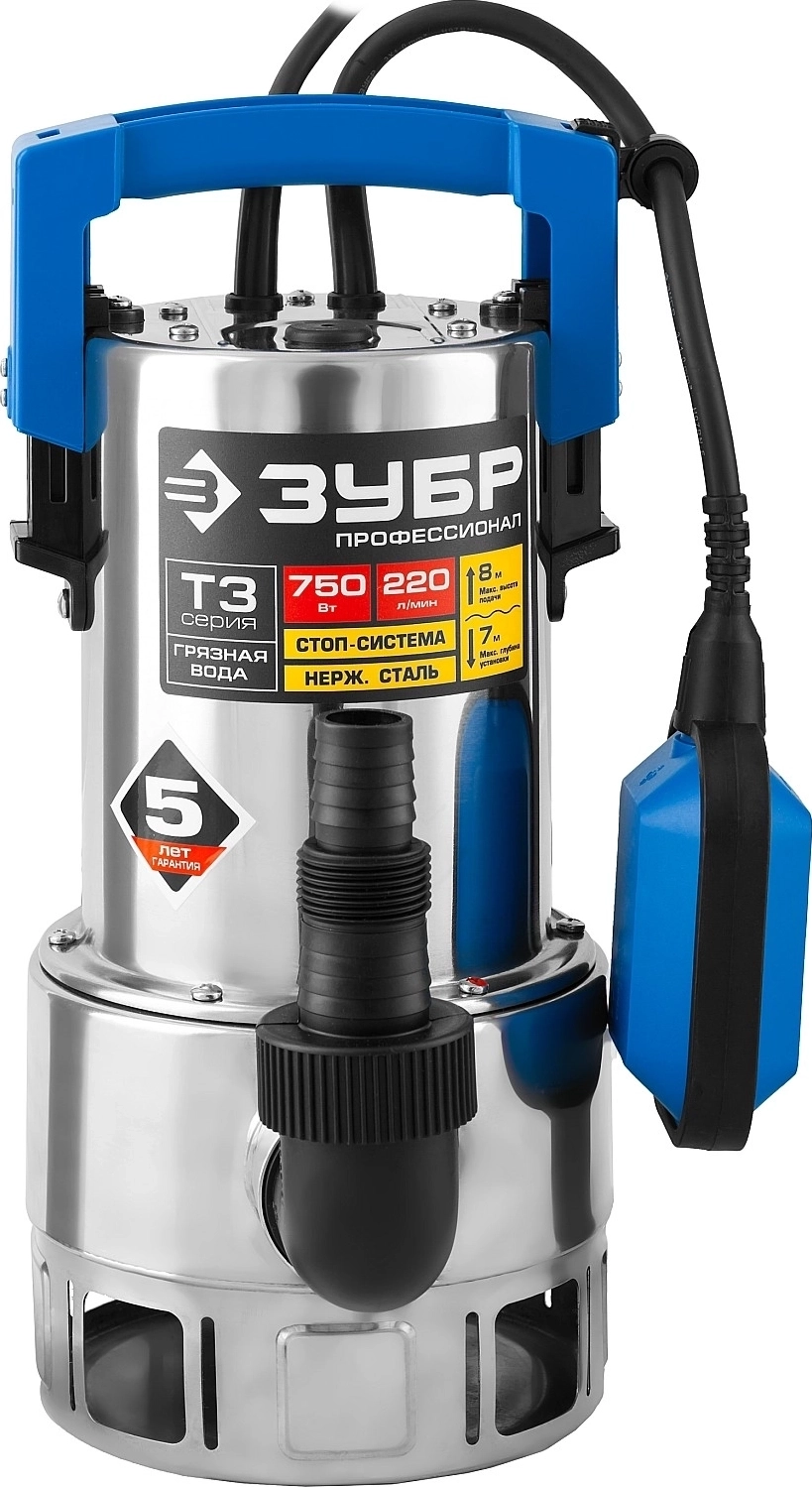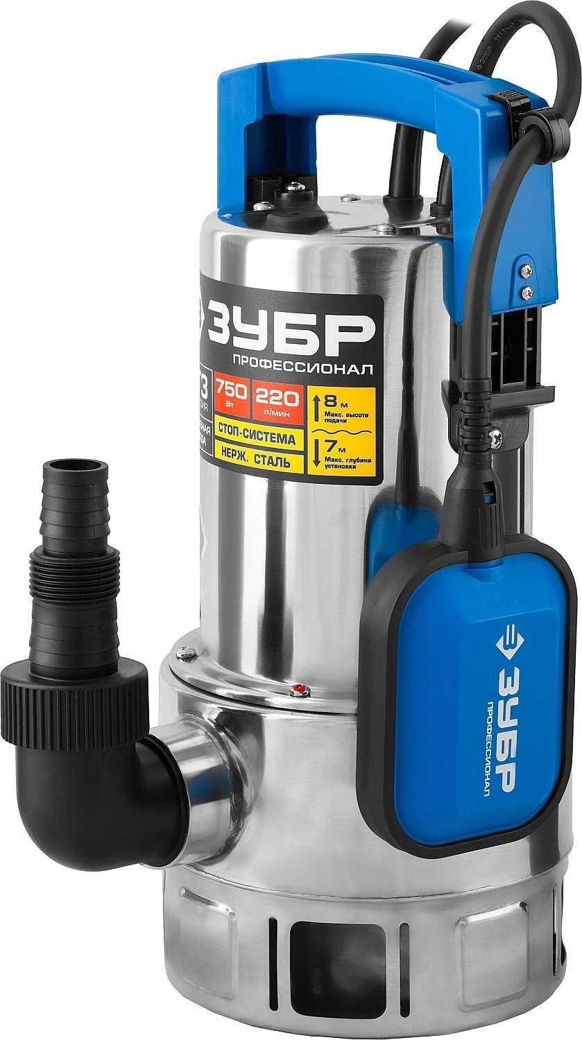Дренажный насос ЗУБР 750 Вт для грязной воды корпус - нерж. сталь