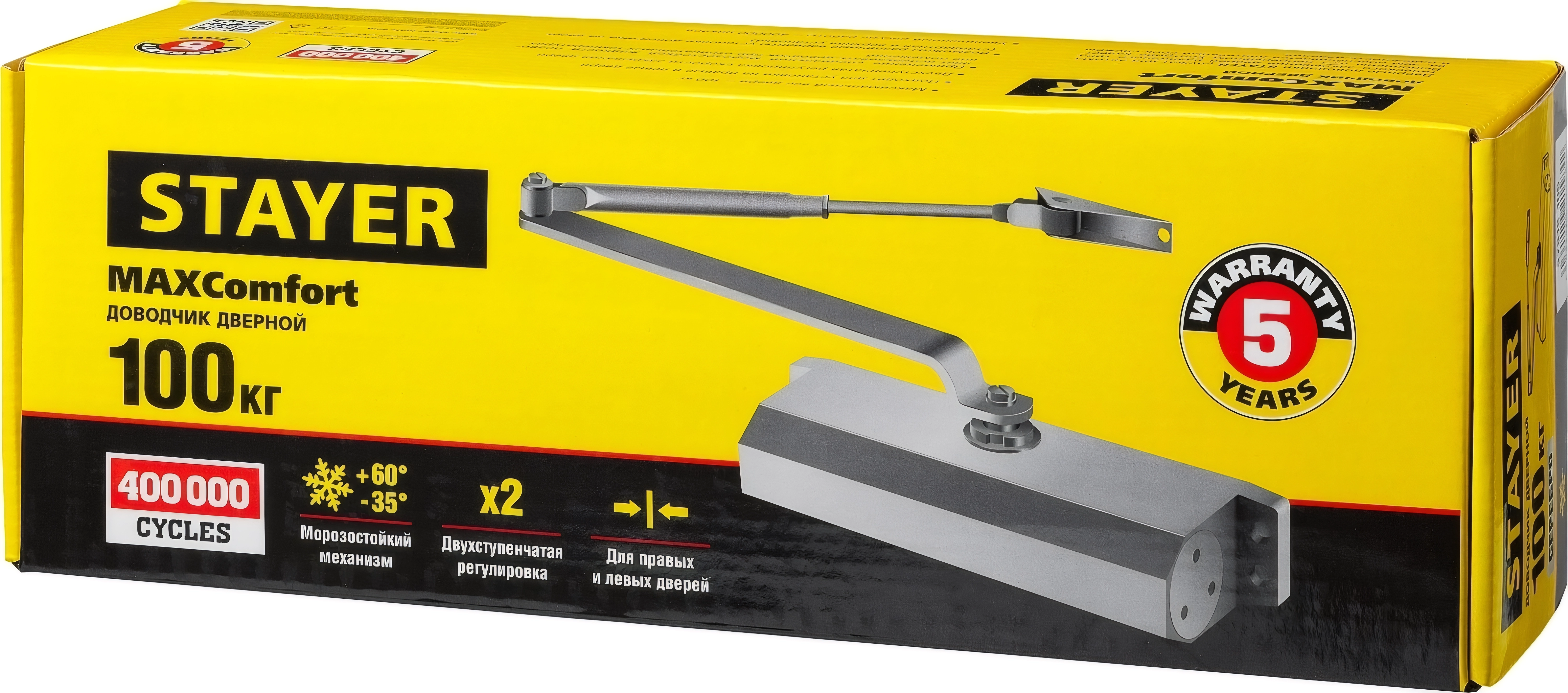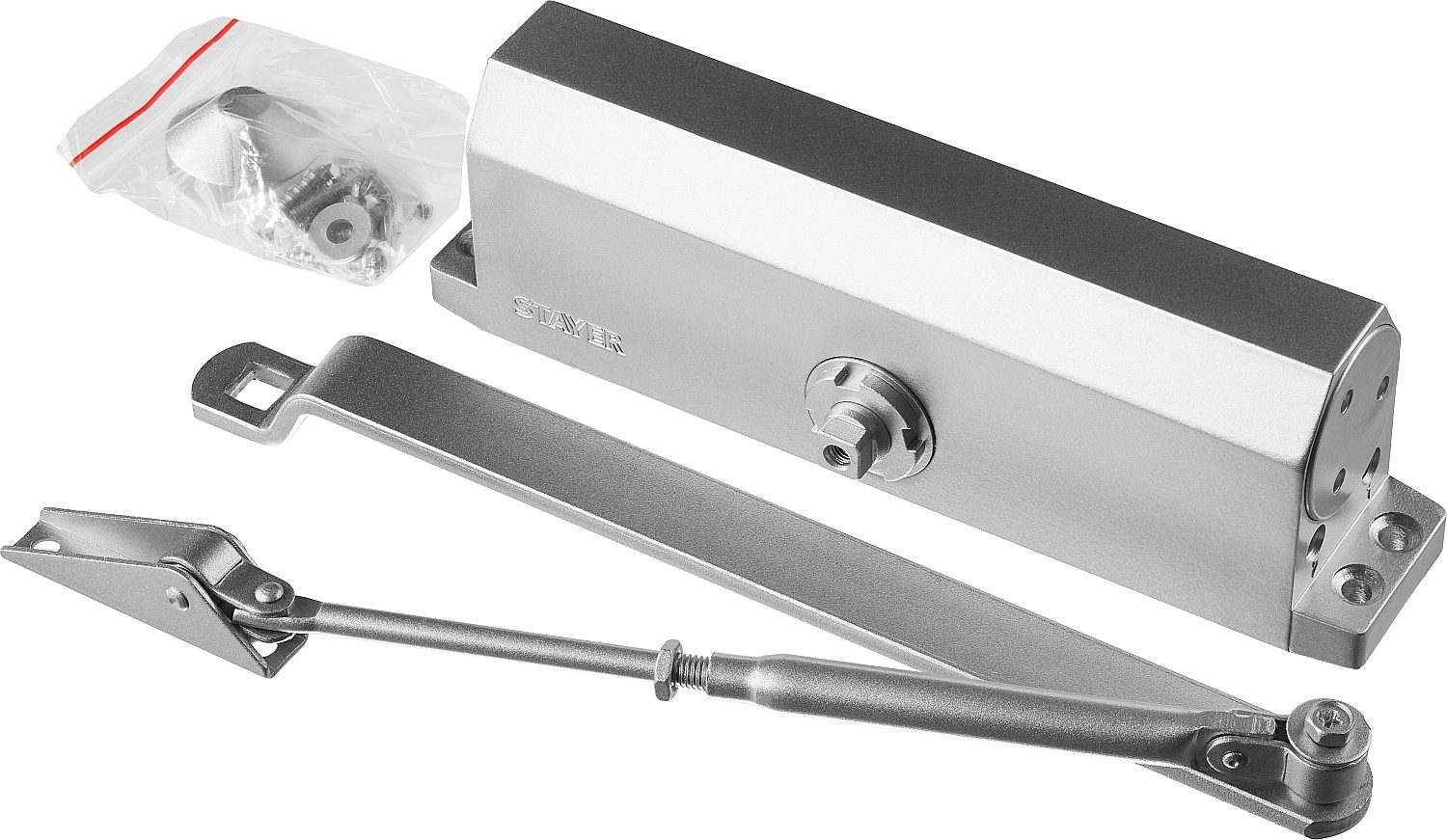 Дверной доводчик STAYER MAXComfort, до 100 кг, цвет серебро