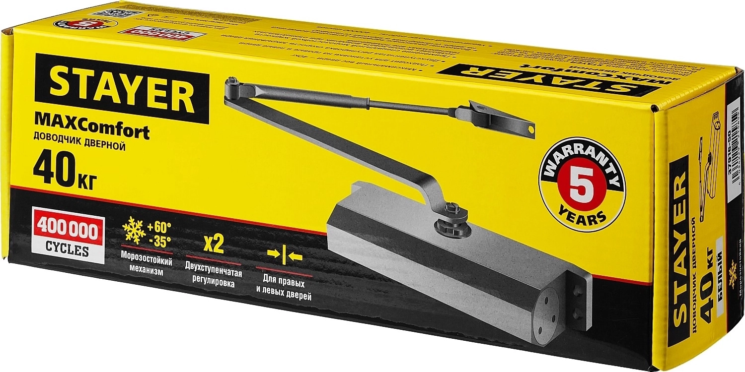 Дверной доводчик STAYER MAXComfort, до 40 кг, белый серебро