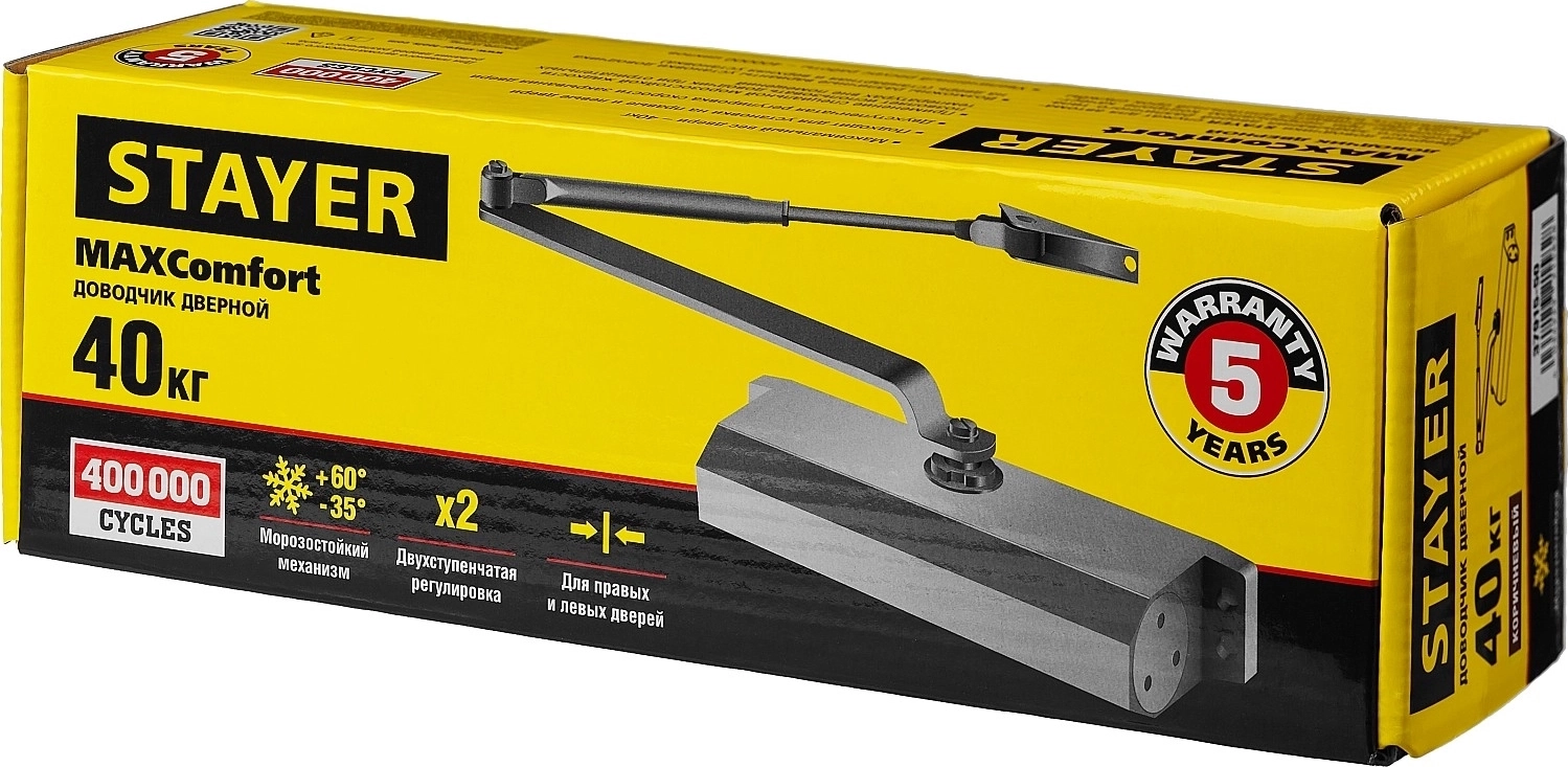 Дверной доводчик STAYER MAXComfort, до 40 кг, коричневый серебро