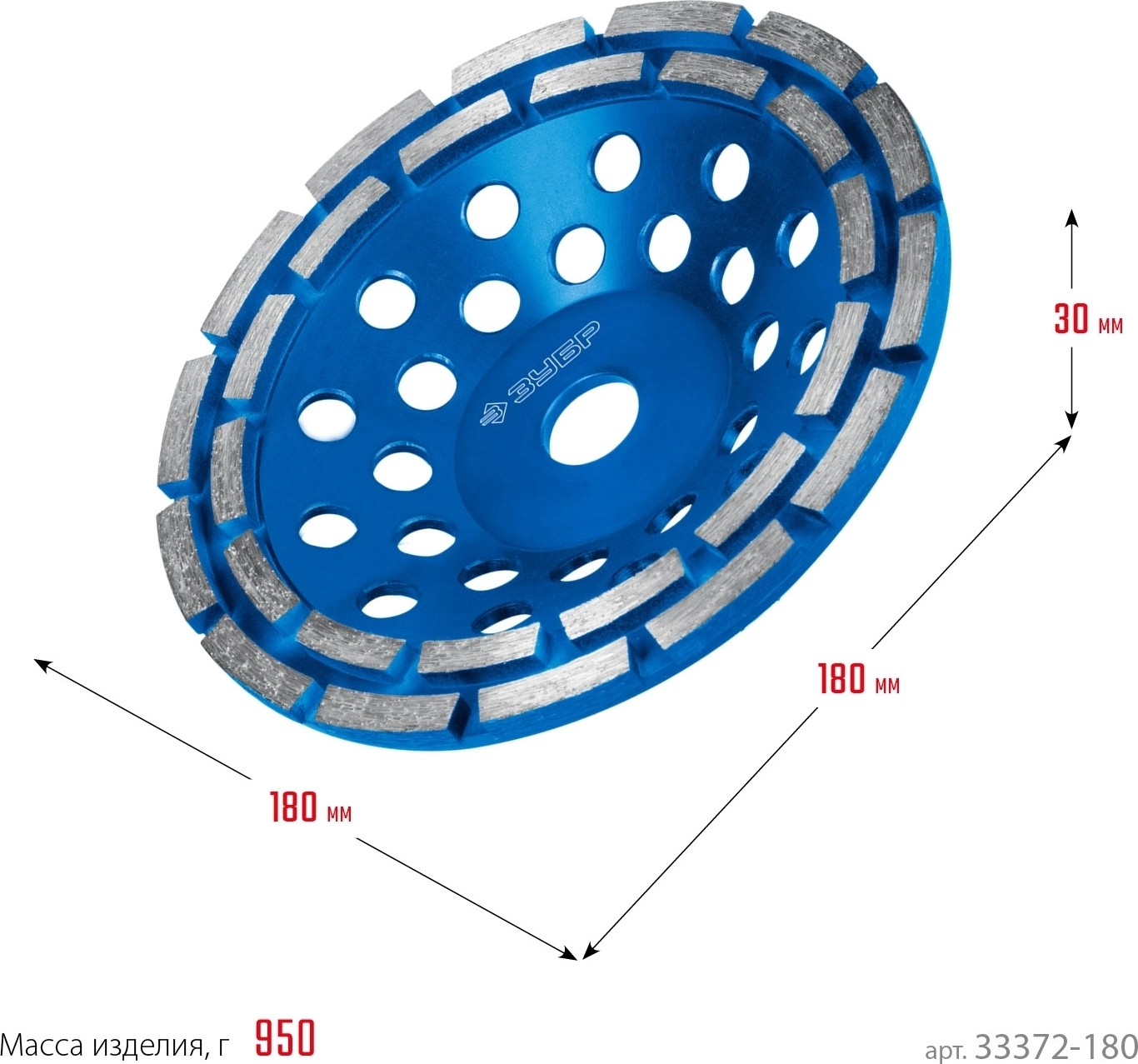 - Два ряда алмазных сегментов для равномерного шлифования и большого объема работ.