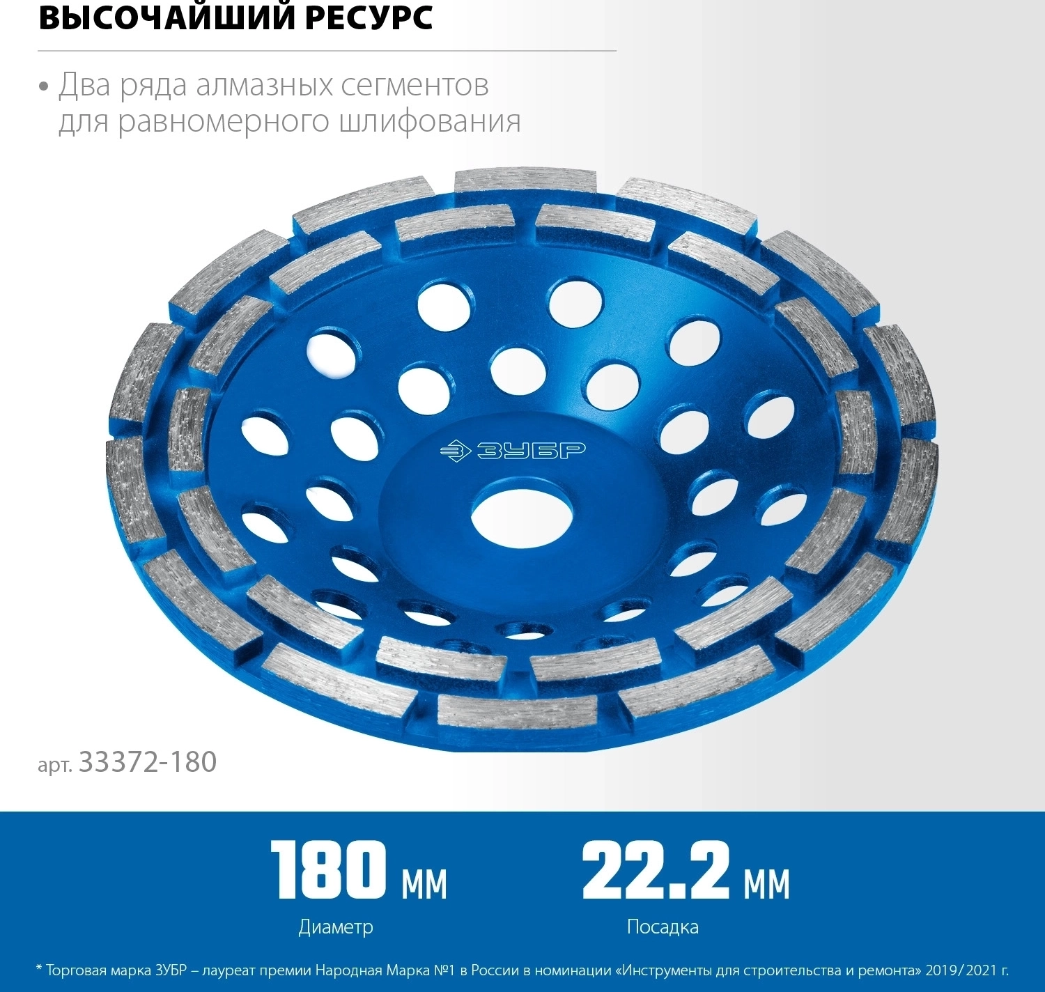 Двухрядная алмазная шлифовальная чашка ЗУБР d 180 мм