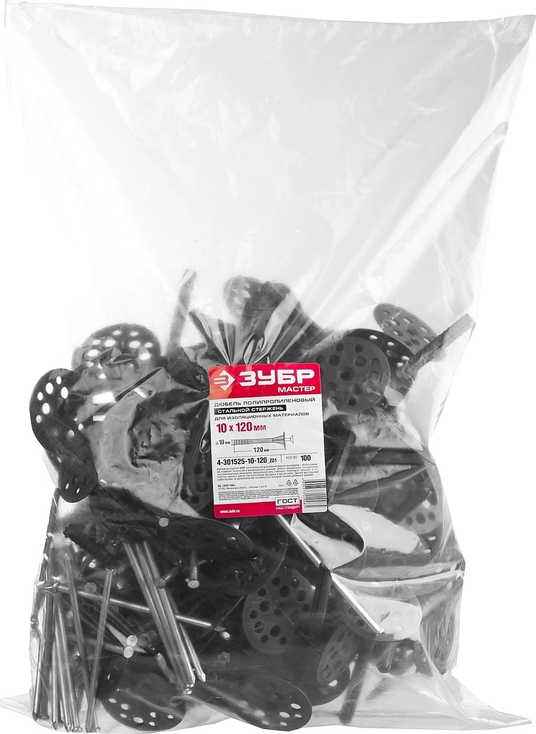 Дюбель для изоляционных материалов ЗУБР 10 х 120 мм, металлический стержень, 100 шт