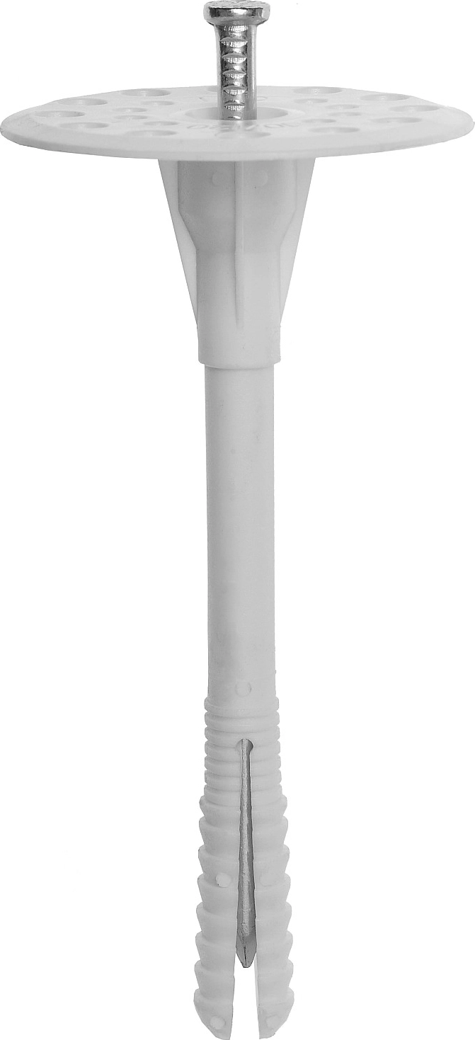 Дюбели для теплоизоляции изготовлены из высококачественных материалов. Большой диаметр головки дюбеля позволяет крепить как твердые, так и мягкие теплоизоляционные материалы (минеральную вату, стекловату, полистирол, пенопласт и др.), препятствуя их разрыву или повреждению в месте крепления.