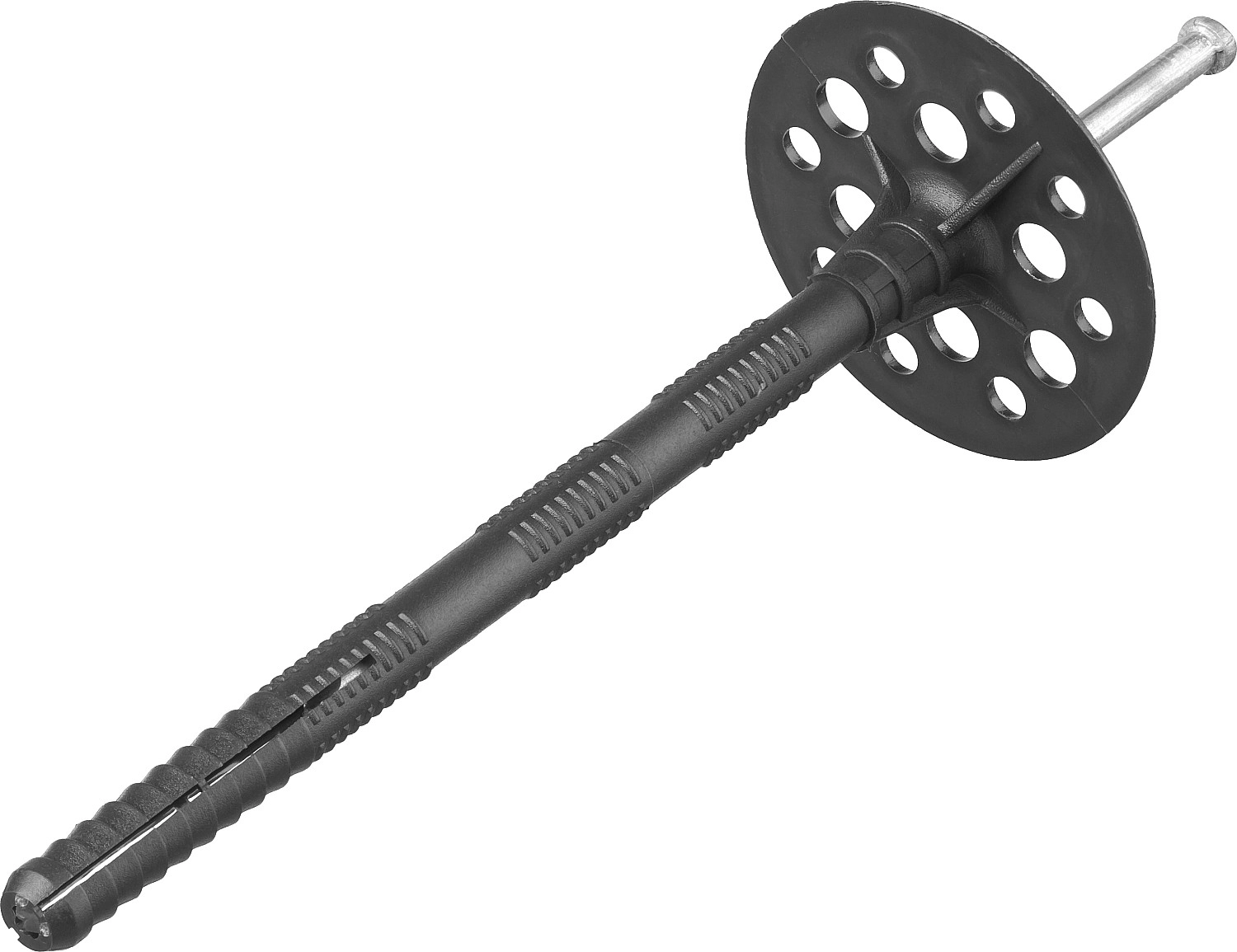 Дюбели для теплоизоляции изготовлены из высококачественных материалов. Большой диаметр головки дюбеля позволяет крепить как твердые, так и мягкие теплоизоляционные материалы (минеральную вату, стекловату, полистирол, пенопласт и др.), препятствуя их разрыву или повреждению в месте крепления.