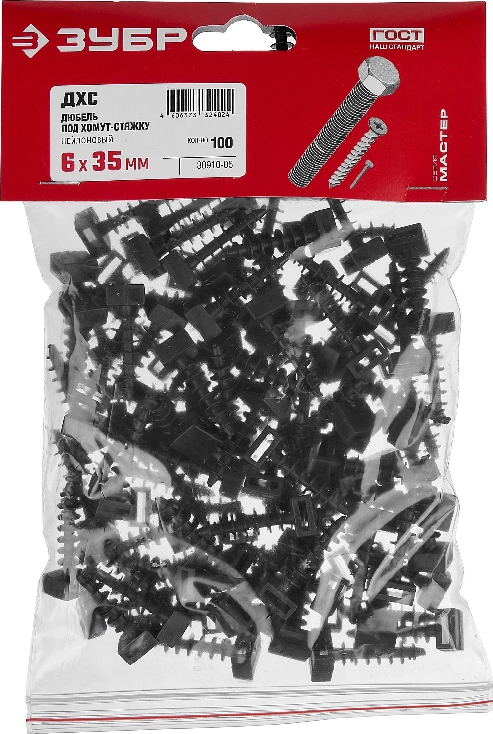 Дюбель под хомут-стяжку ЗУБР ДХС, 6 x 35 мм, нейлон, 100 шт