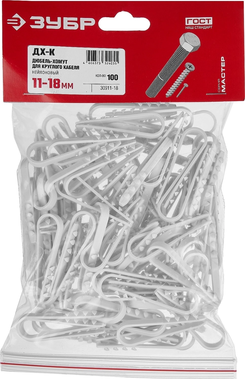 Дюбель-хомут для круглого кабеля ЗУБР ДХ-К, 11 - 18 мм, нейлон, 100 шт