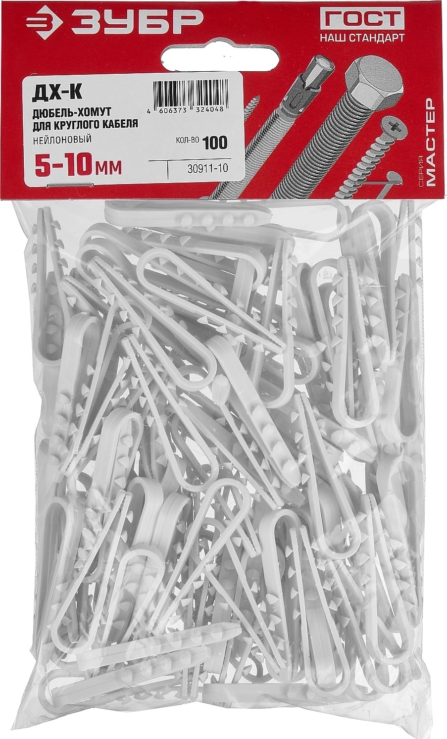 Дюбель-хомут для круглого кабеля ЗУБР ДХ-К, 5 - 10 мм, нейлон, 100 шт