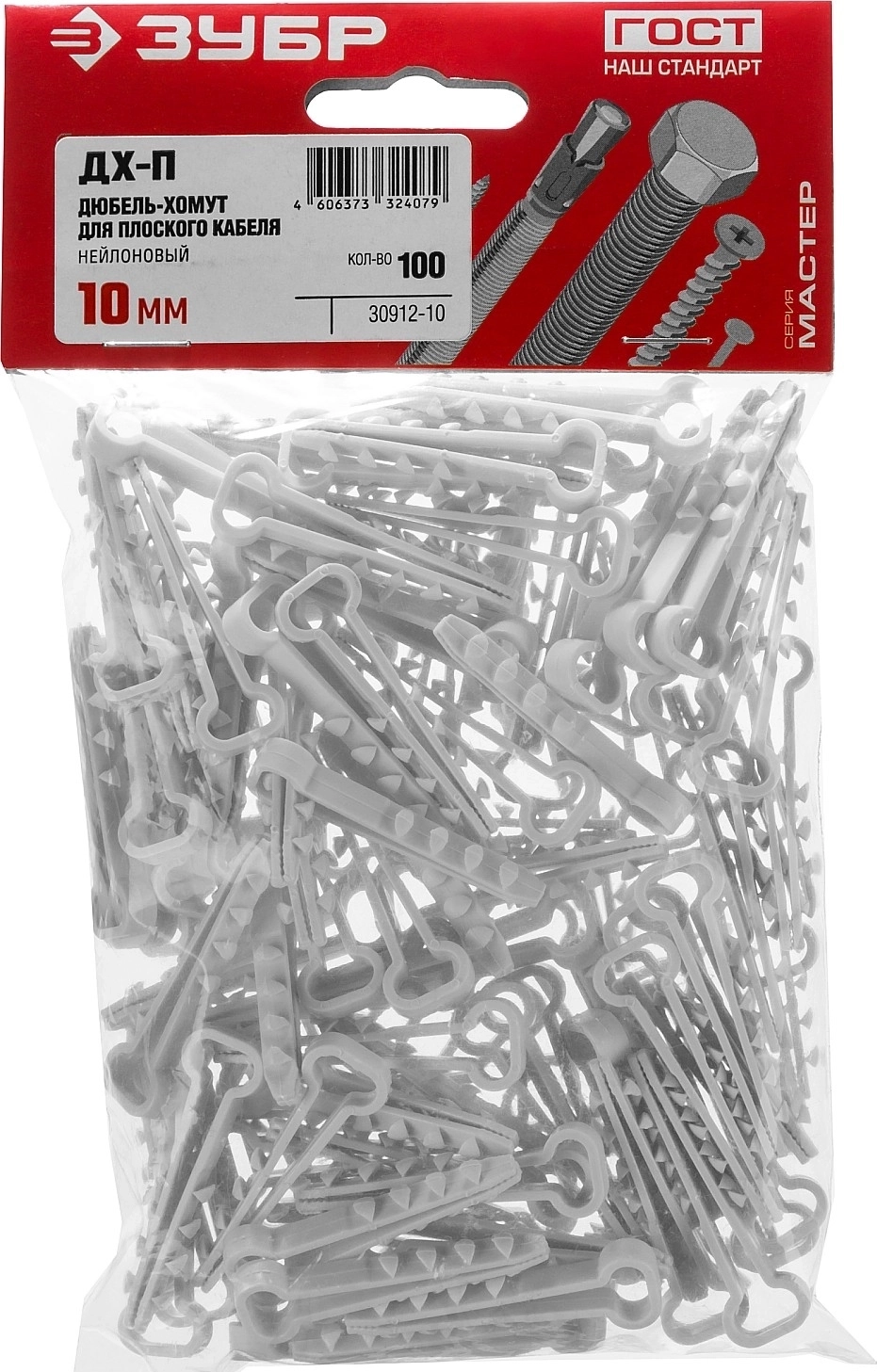 Дюбель-хомут для плоского кабеля ЗУБР ДХ-П, 10 мм, нейлон, 100 шт