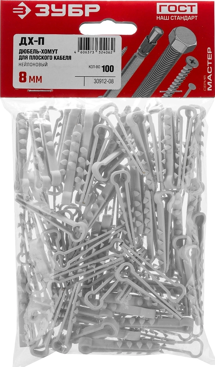 Дюбель-хомут для плоского кабеля ЗУБР ДХ-П, 8 мм, нейлон, 100 шт