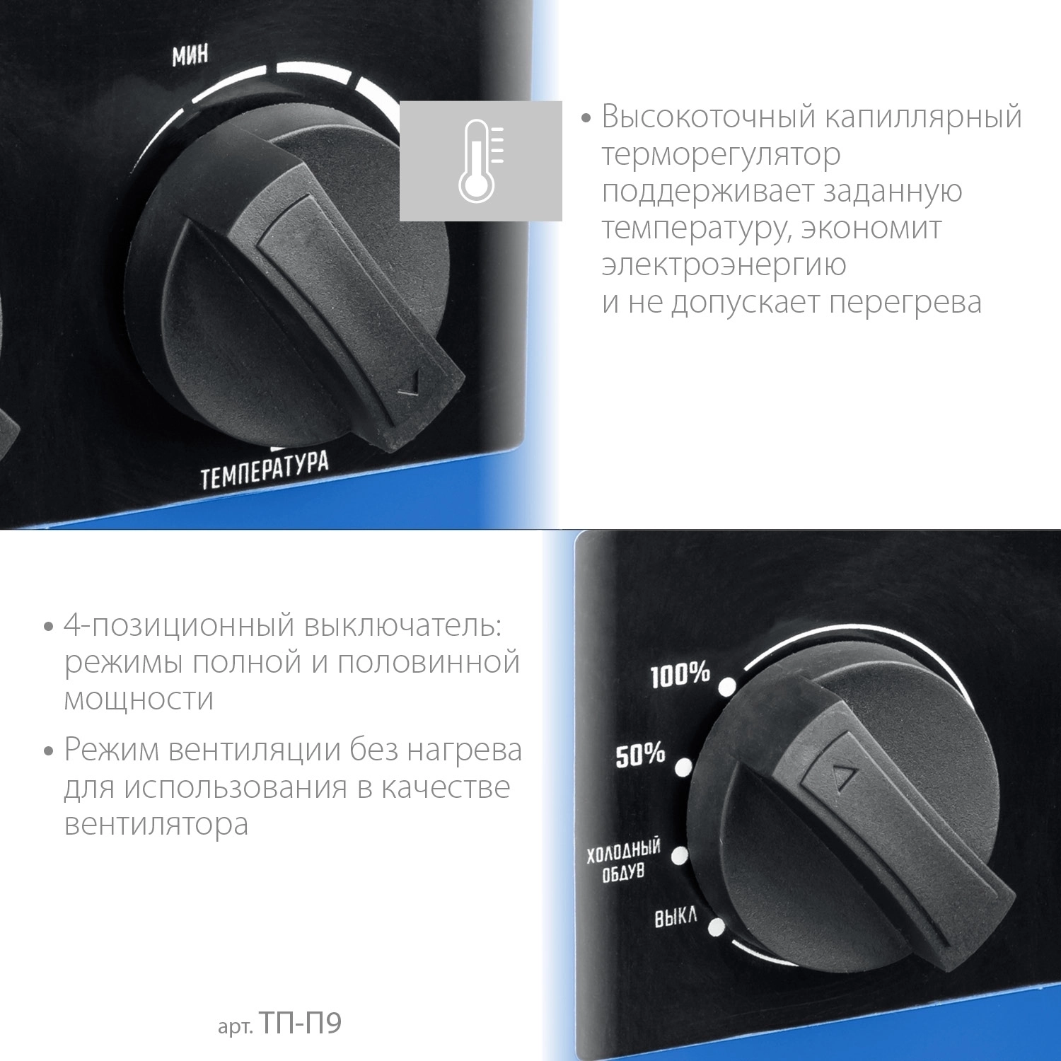 - Плавная регулировка обеспечивает установку комфортной температуры по желанию