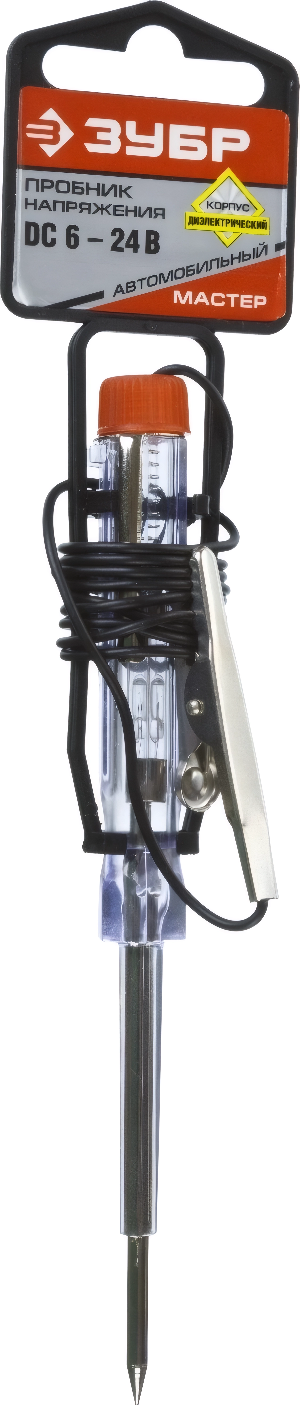 Электрический пробник для автопроводки ЗУБР 6 - 24 В, пластик, клипса, на подвеске, провод 86 см