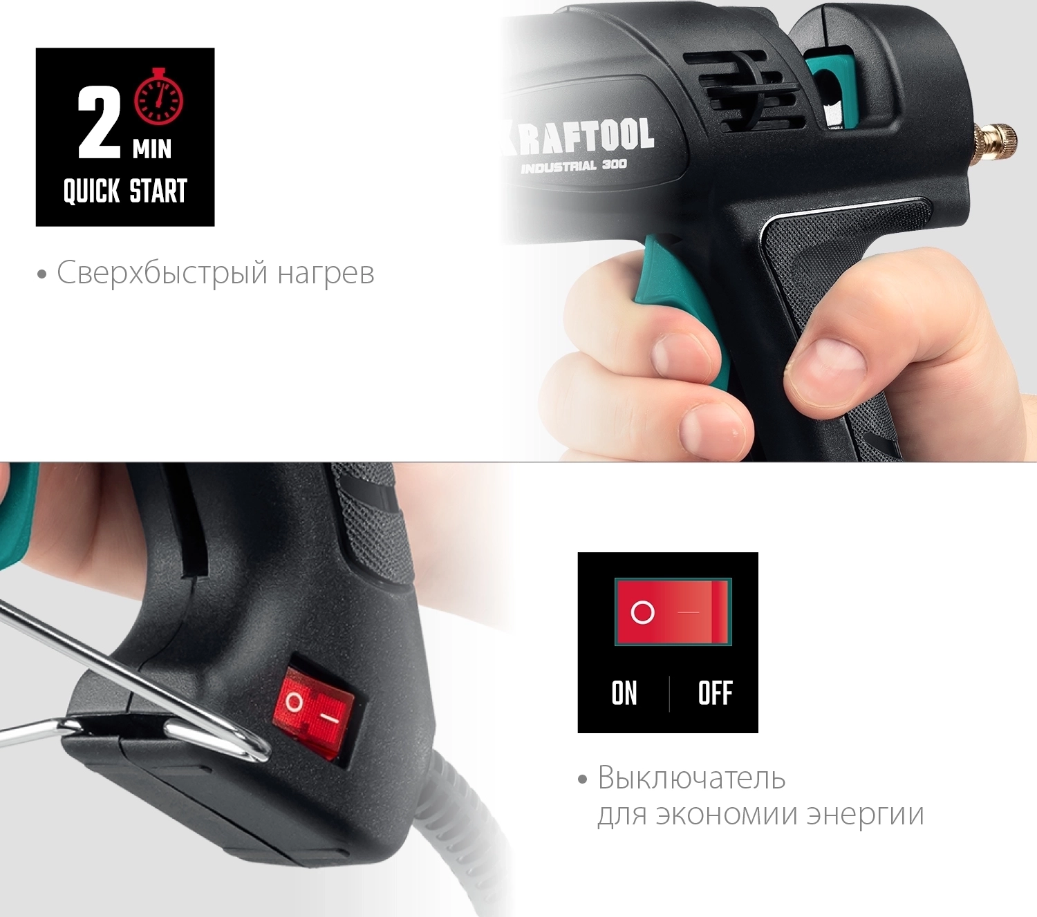 Электрический термоклеевой пистолет KRAFTOOL Industrial 300, d 11 - 12 мм, 45 г/мин