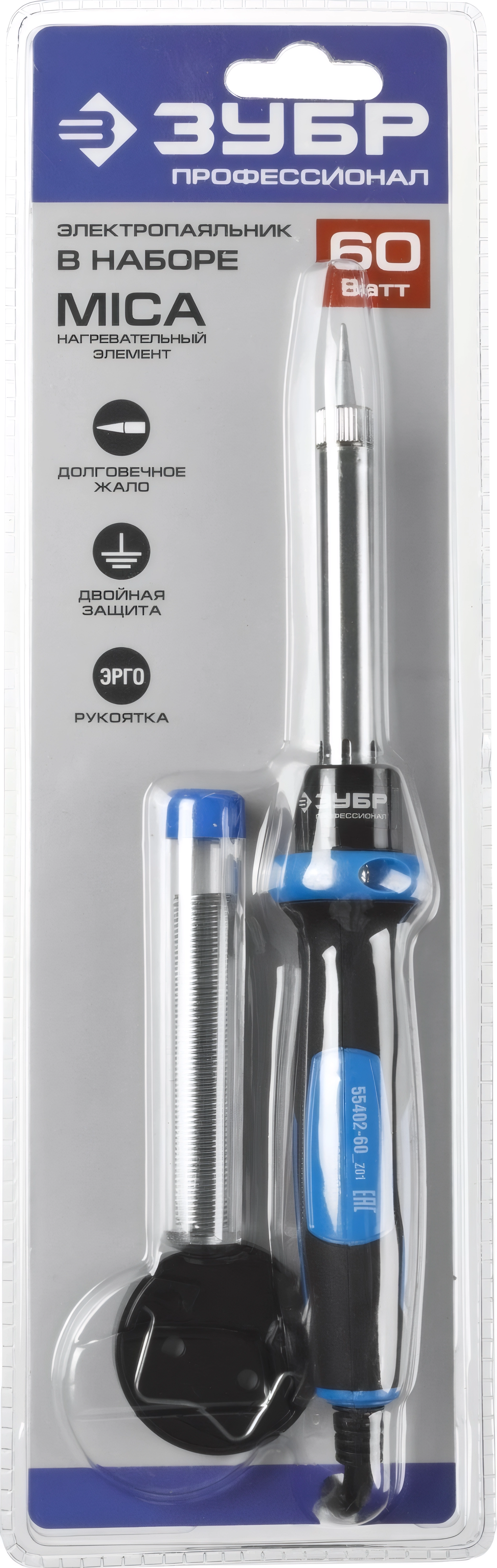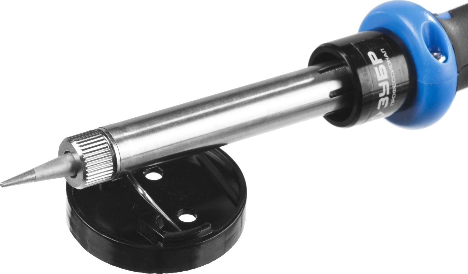 Электропаяльник ЗУБР 60 Вт в наборе: припой + подставка 2к рукоятка конус керамический нагреватель