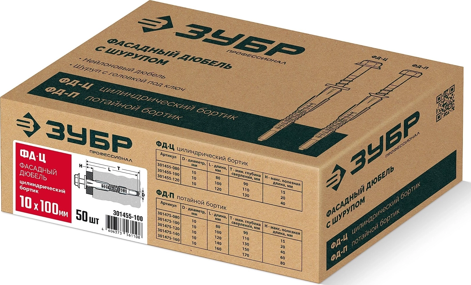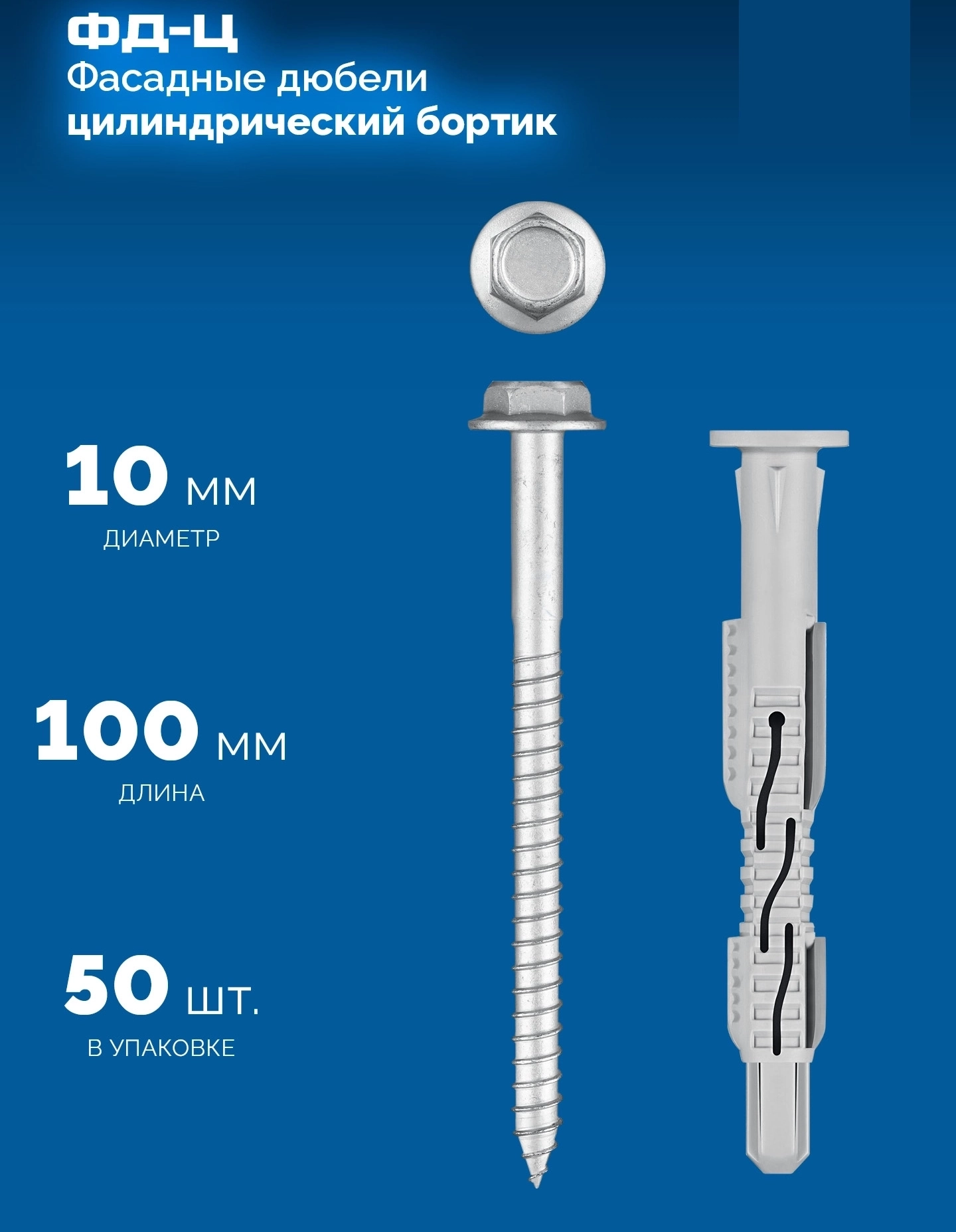Фасадный дюбель ЗУБР ФД-Ц 10x 100 мм нейлон/цинк 50 шт