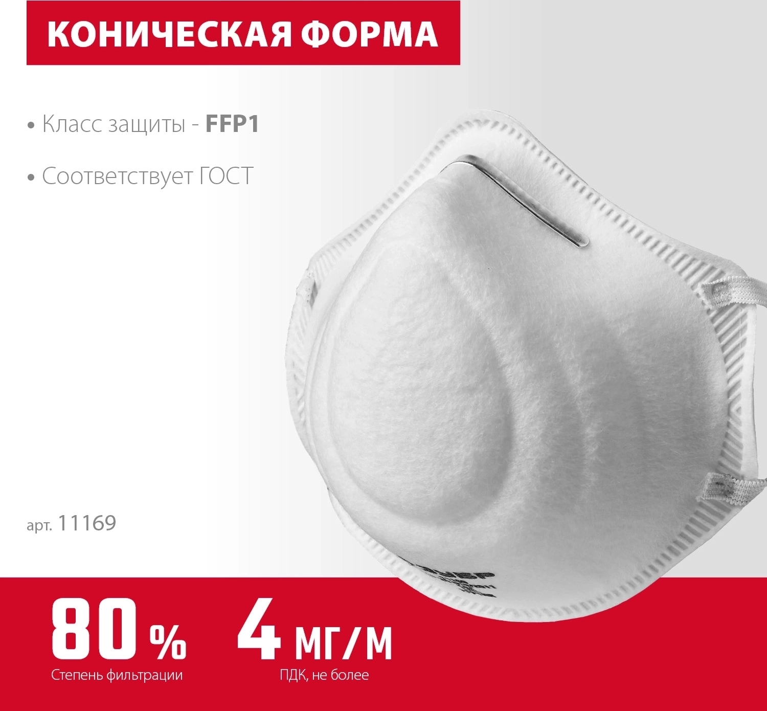 Фильтрующая полумаска ЗУБР Ф-80, класс защиты FFP1, коническая
