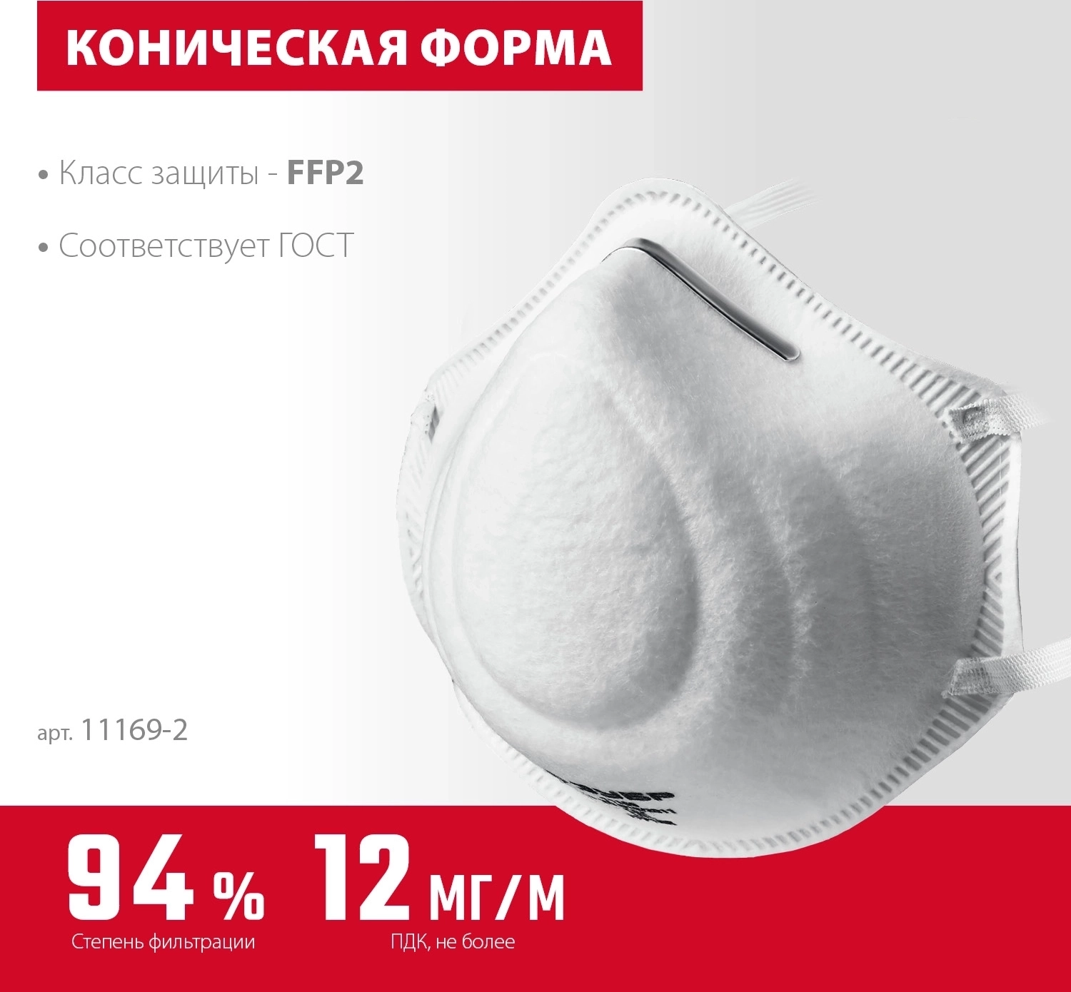 Фильтрующая полумаска ЗУБР Ф-95, класс защиты FFP2, коническая