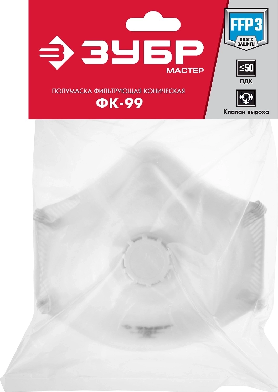 Фильтрующая полумаска с клапаном выдоха ЗУБР ФК-99, класс защиты FFP3, коническая