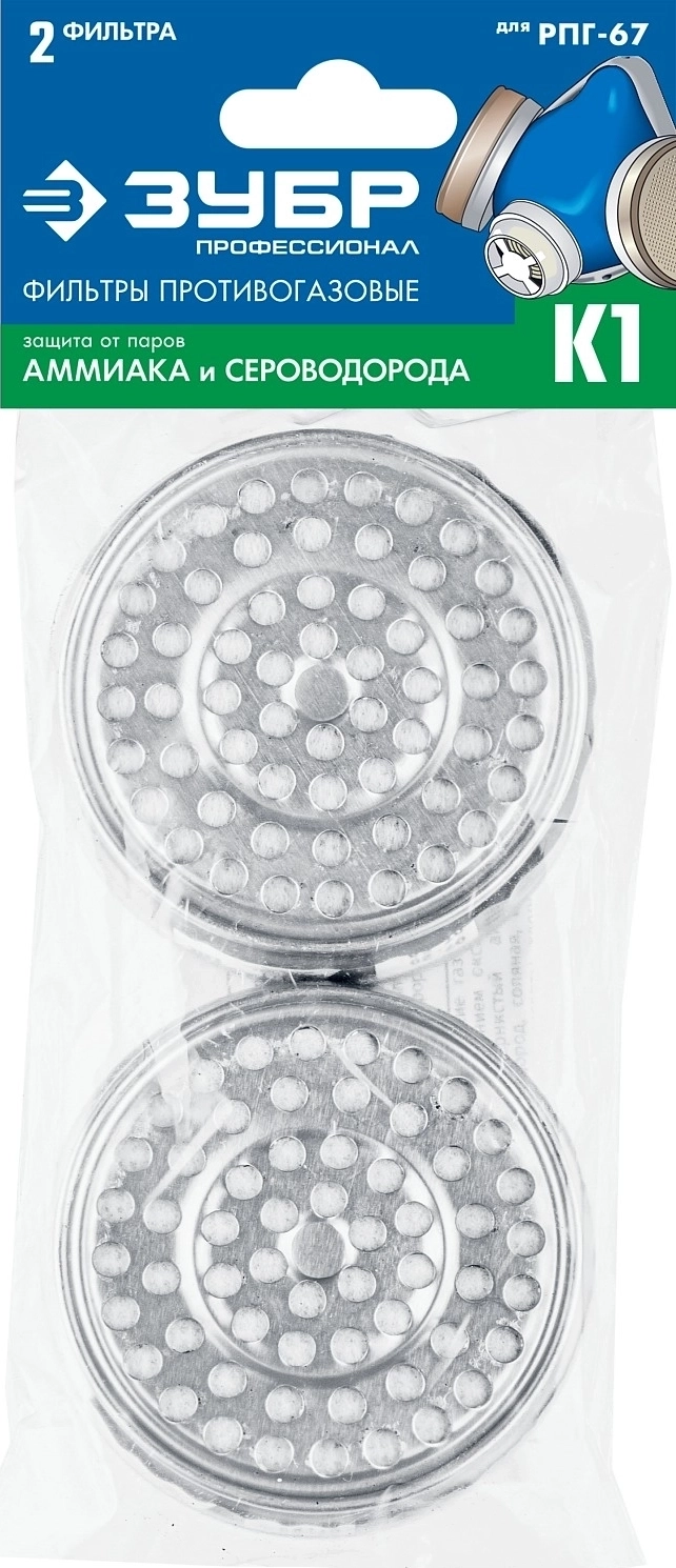 Применяется в сборе с фильтрующей полумаской ЗУБР арт. 11140_z02, Используется при объемной доле свободного кислорода в воздухе не менее 18% и суммарной концентрации вредных веществ, превышающей предельно допустимые концентрации (ПДК) не более, чем в 15 раз. Работоспособен во всех климатических зонах РФ по ГОСТ 15150. Фильтр не может быть использован в следующих типах СИЗОД: пожарных, военных, медицинских, авиационных и для подводных работ. Противогазовый фильтр марки K1 по классу защиты относится к фильтрам низкой эффективности. Он предназначен для защиты от воздействия паров аммиака и его органических производных, сероводорода.