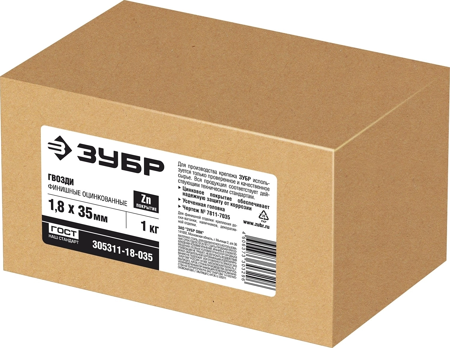 Финишные гвозди ЗУБР 35 x 1.8 мм, цинк, 1 кг