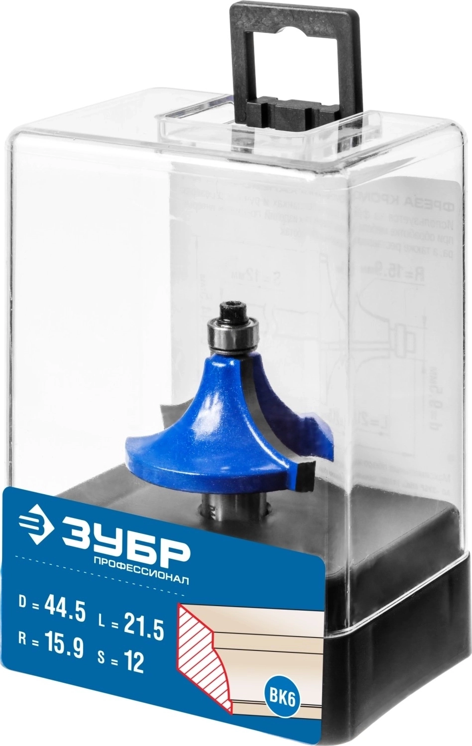 Фреза кромочная калевочная №1 ЗУБР 44.5 x 21.5 мм радиус 15.9 мм