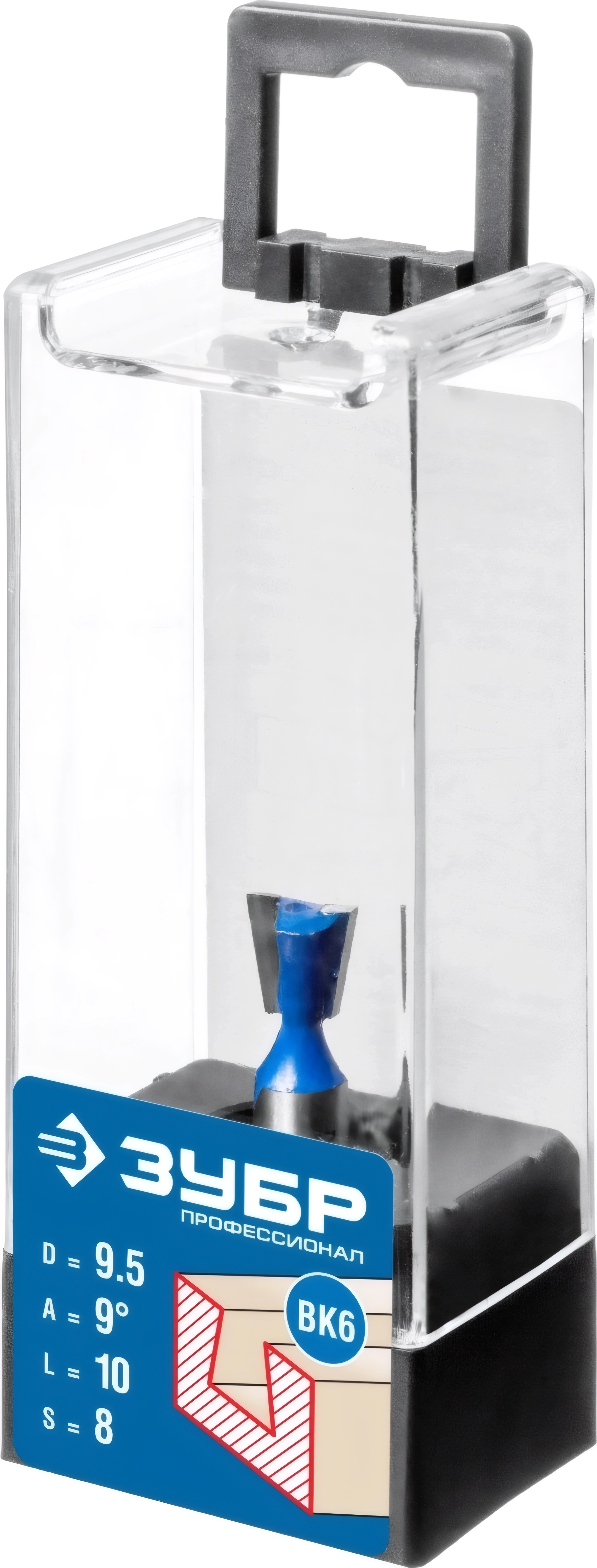 Фреза пазовая фасонная ″Ласточкин Хвост″ ЗУБР 9.5 x 10 мм угол 9 гр.
