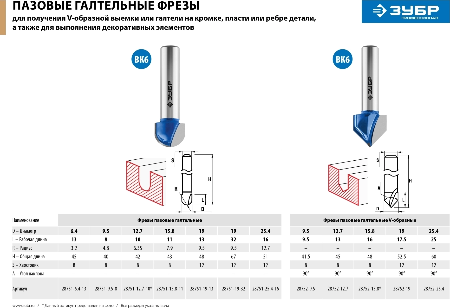 Фреза пазовая галтельная ЗУБР 9.5 x 8 мм радиус 4.8 мм
