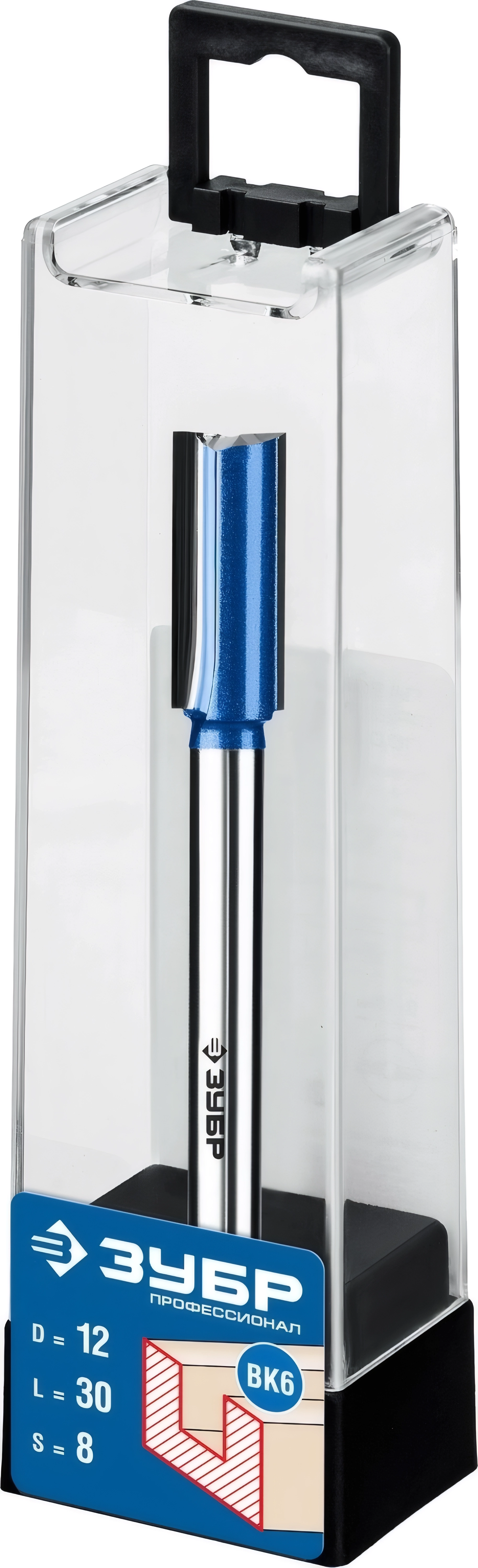 Фреза пазовая прямая с нижними подрезателями ЗУБР 12 x 30 мм хвостовик 8 мм