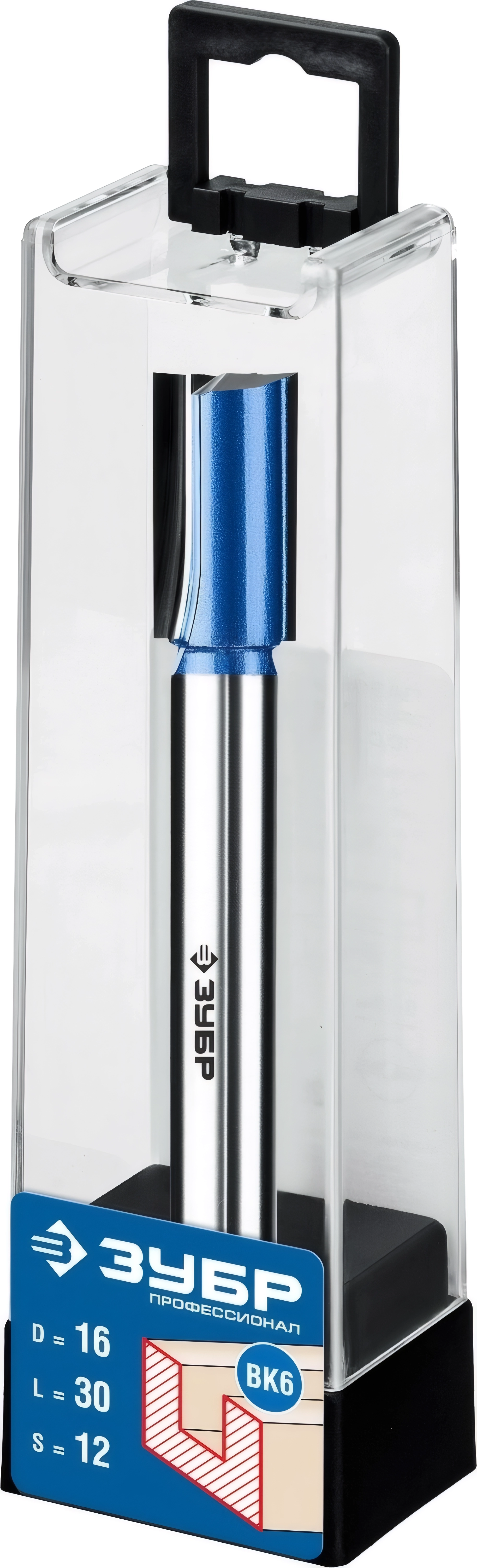 Фреза пазовая прямая с нижними подрезателями ЗУБР 16 x 30 мм хвостовик 12 мм