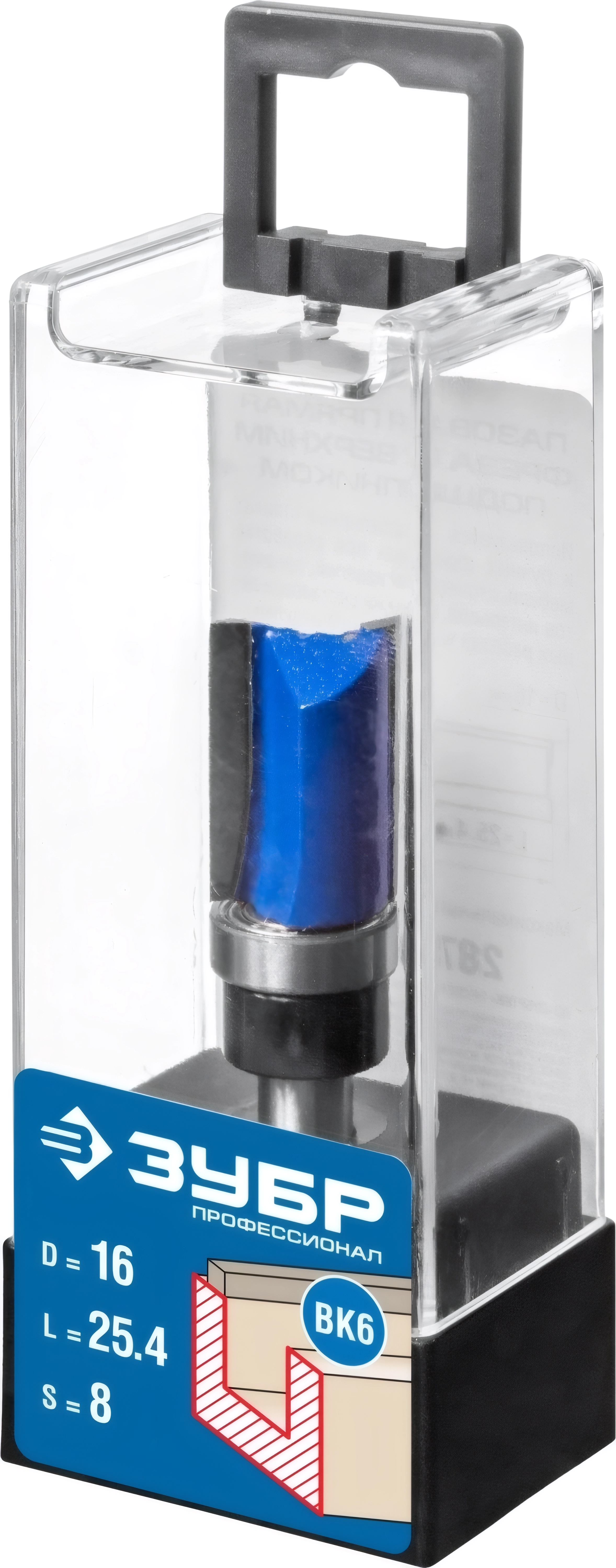 Фреза пазовая прямая с верхним подшипником ЗУБР 15.8 x 25.4 мм хвостовик 8 мм