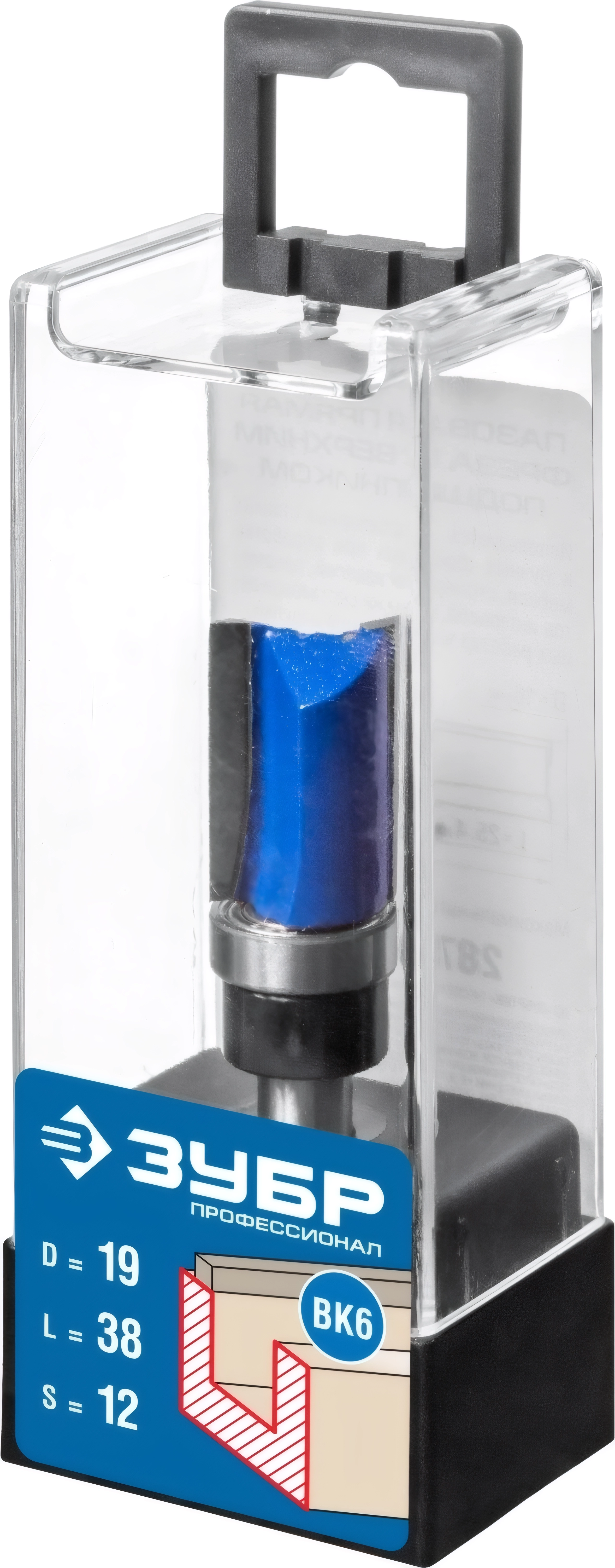 Фреза пазовая прямая с верхним подшипником. ЗУБР 19 x 38 мм хвостовик 12 мм