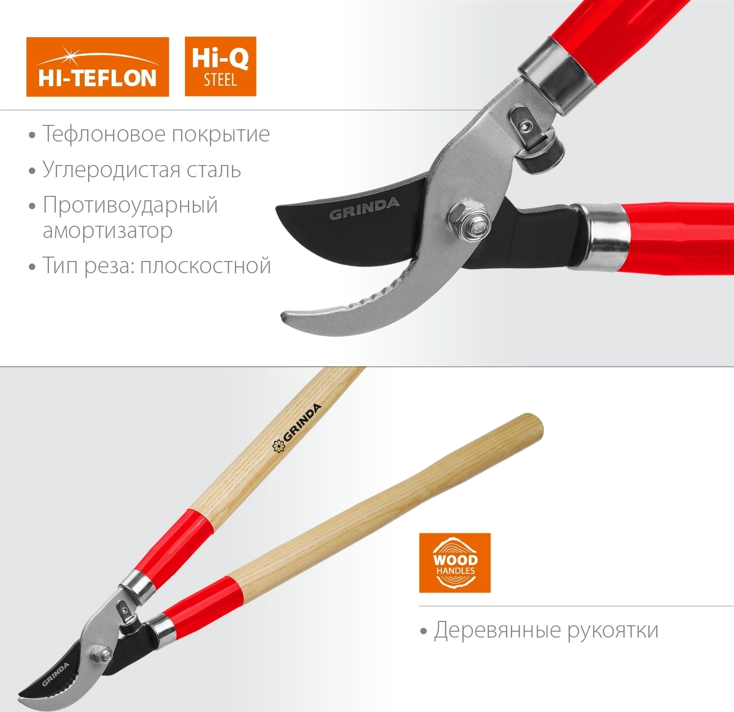 Плоскостной сучкорез GRINDA W-700, длина 700 мм, закаленные лезвия, рукоятки из дерева высшего сорта