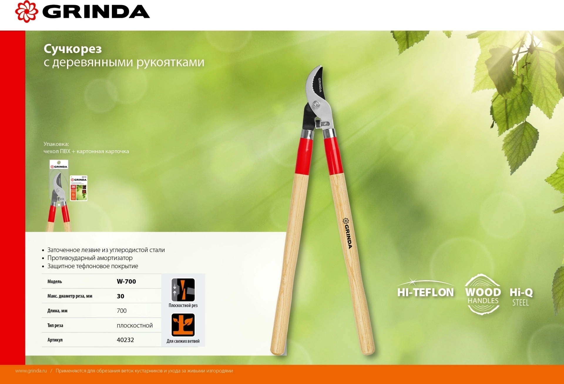 Сучкорезы GRINDA прочны и долговечны. Удобны в работе, режут легко.