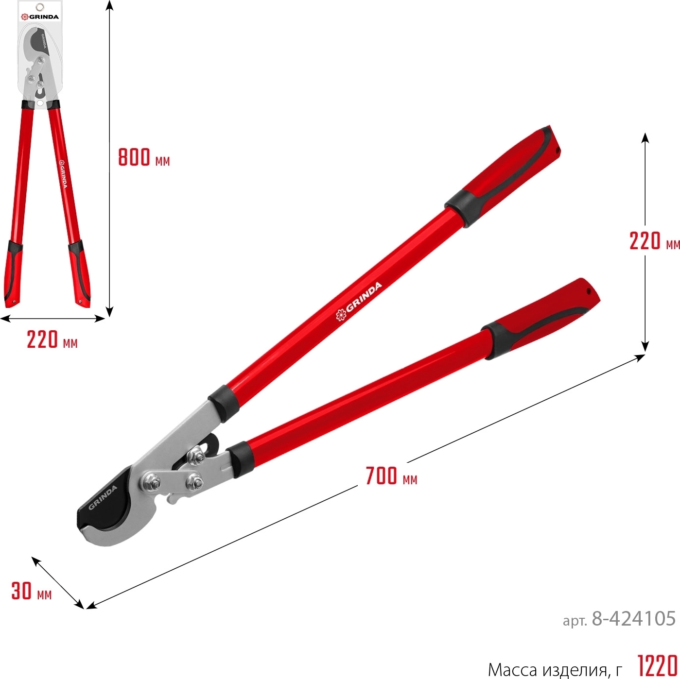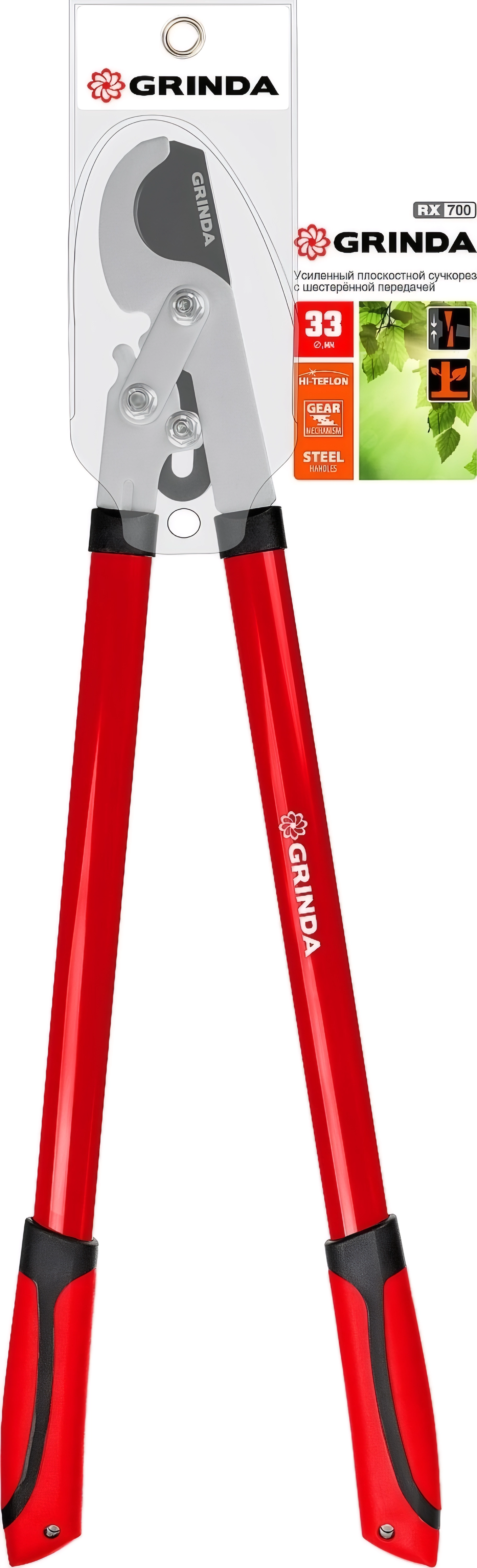 Усиленный плоскостной сучкорез GRINDA RX-700, 700 мм, с шестерённой передачей, закаленные лезвия
