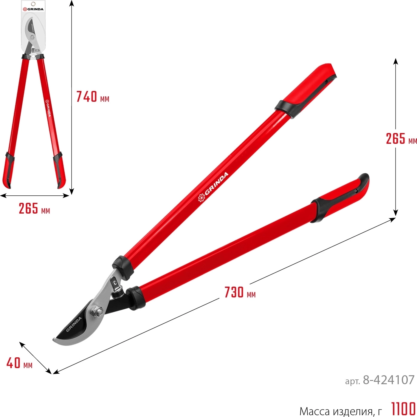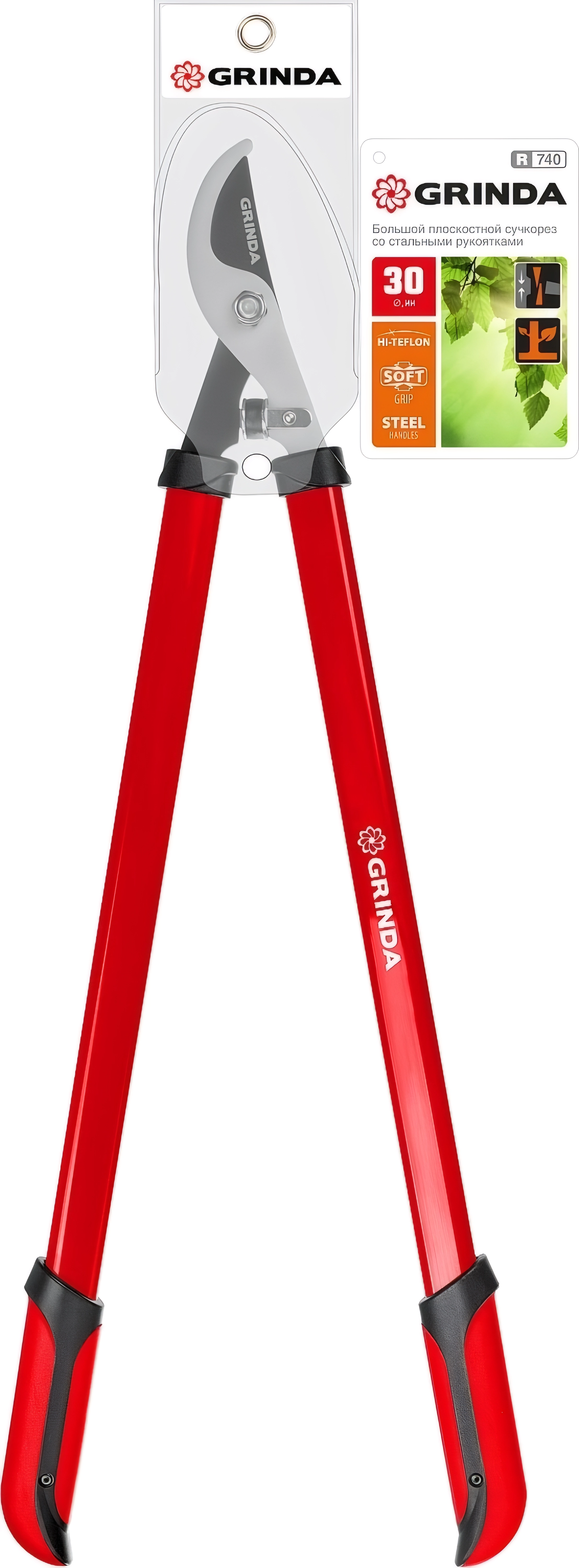 Большой плоскостной сучкорез GRINDA R-740, 740 мм, закаленные лезвия, стальные рукоятки