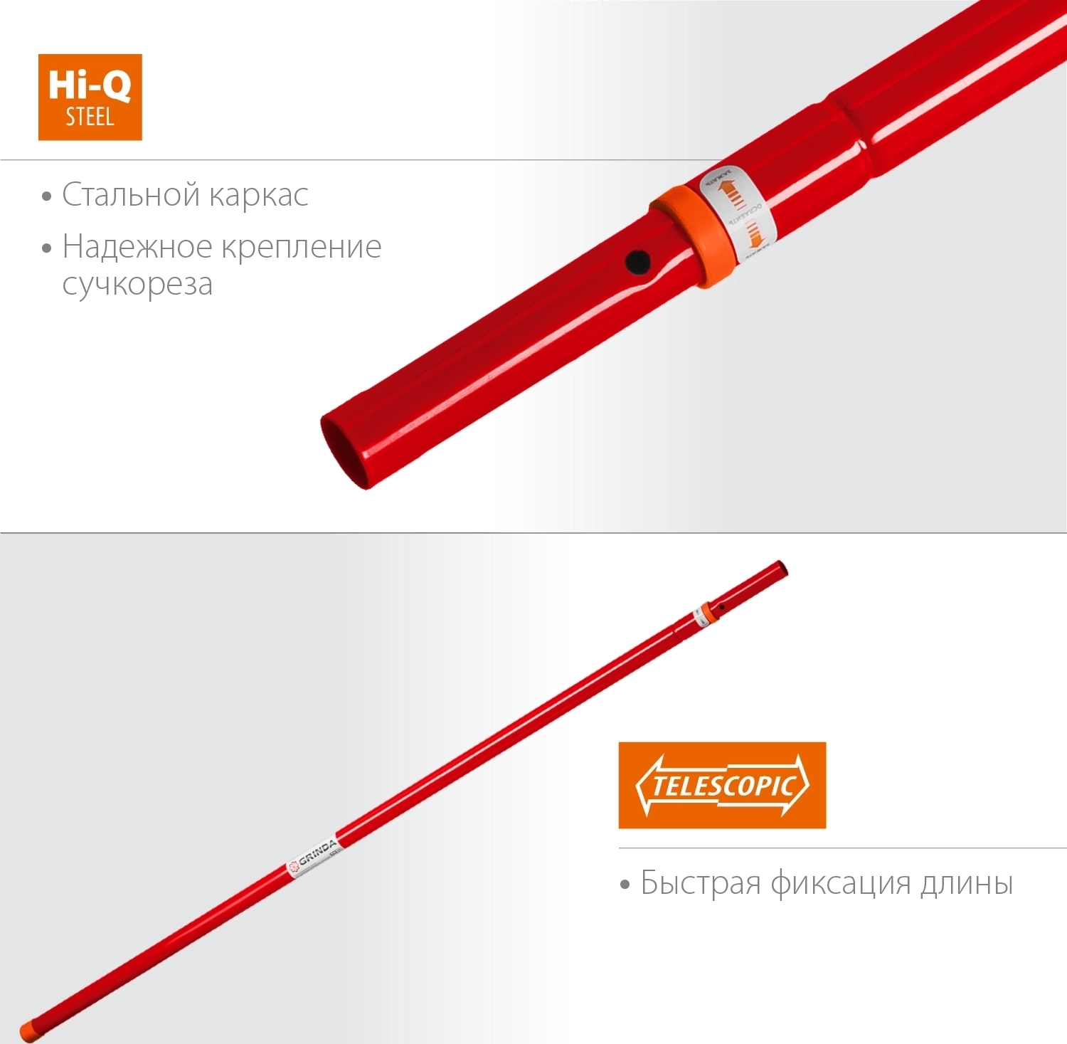 Телескопическая ручка GRINDA TH-24, 1250-2400 мм, сталь, высокоуглеродистая , для штанговых сучкорезов
