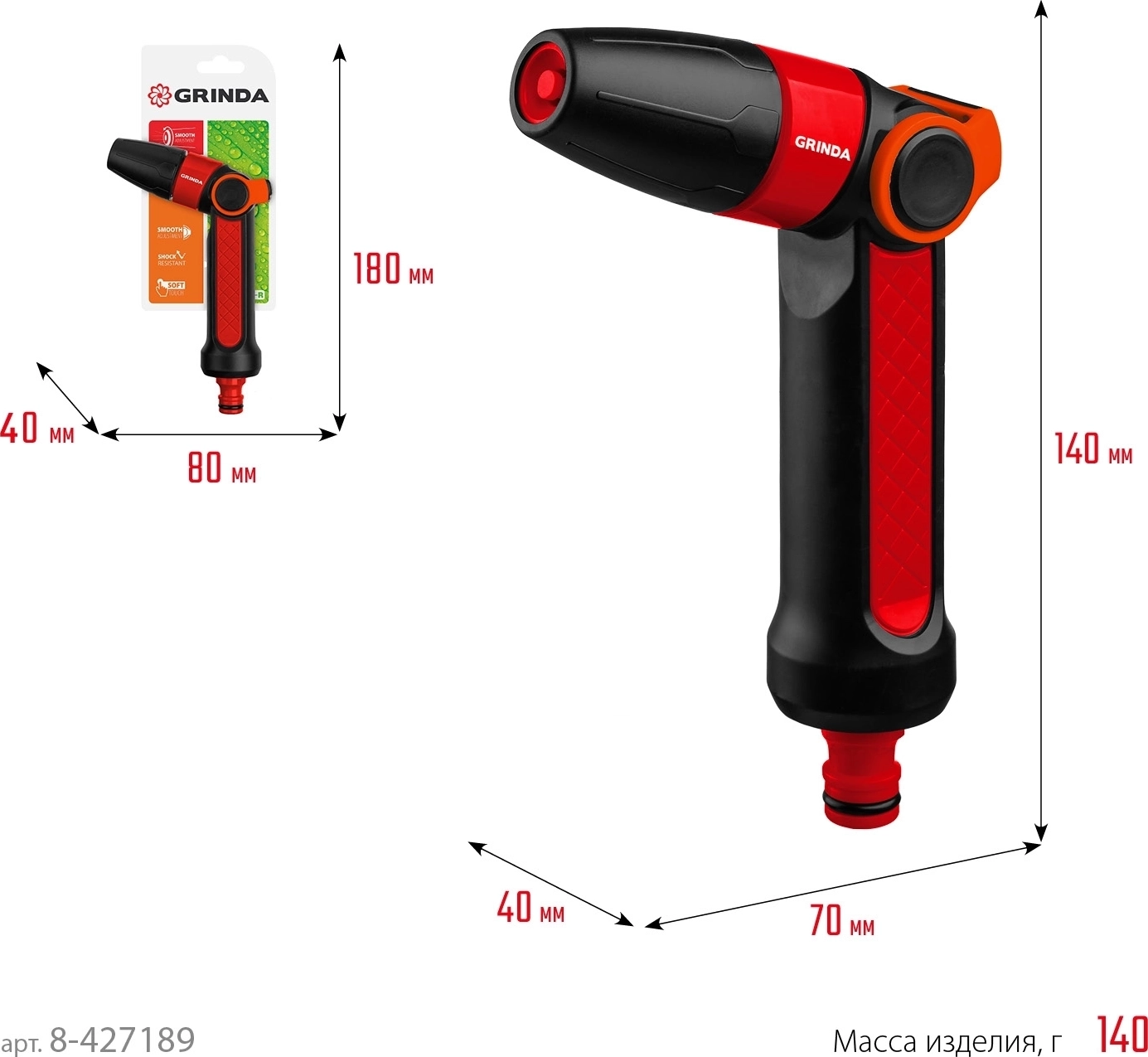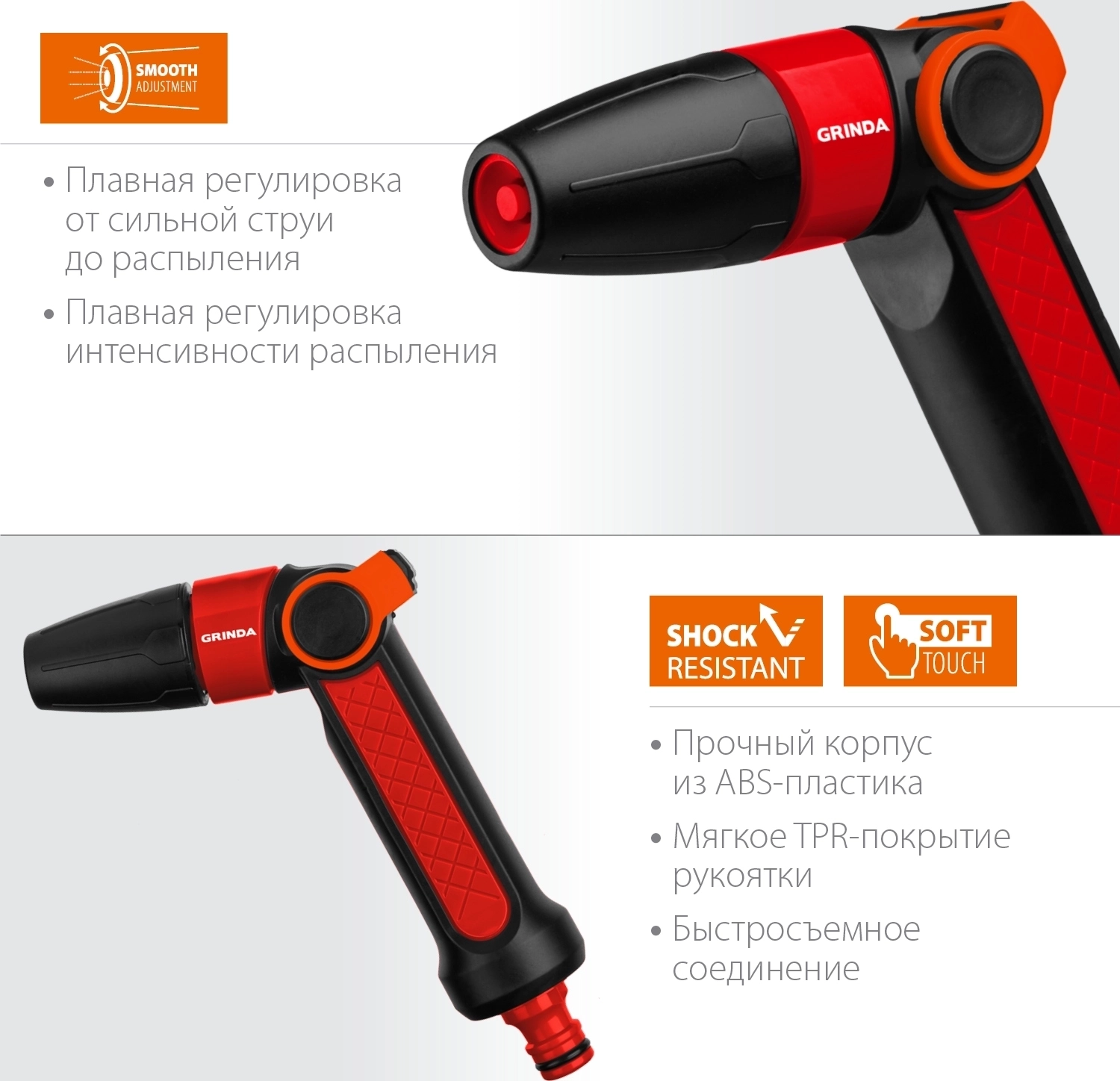 Поливочный пистолет GRINDA N-R, плавная регулировка, двухкомпонентный