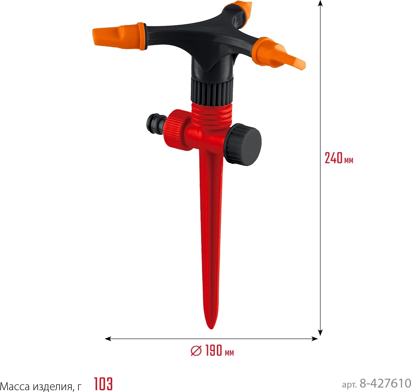 - -3 поворотных сопла позволяют настроить радиус полива и обеспечивают его равномерность.,