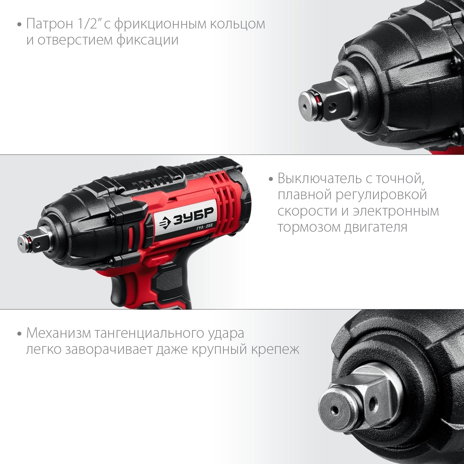 - Патрон с квадратным хвостовиком позволяет устанавливать стандартные головки без переходников