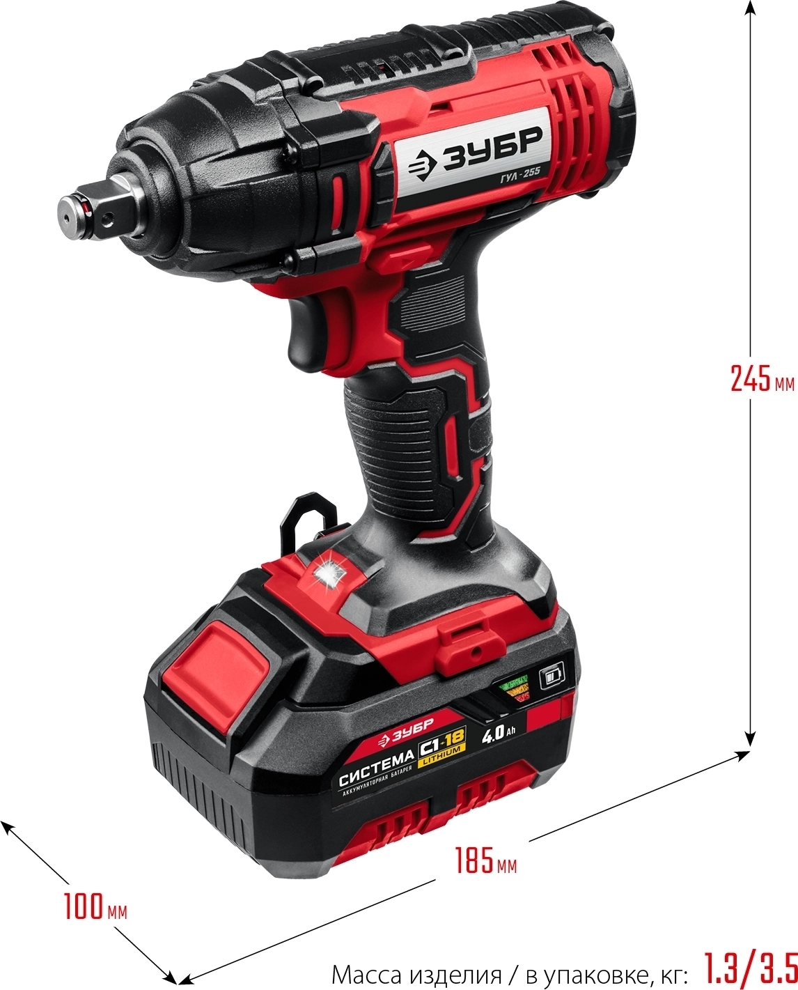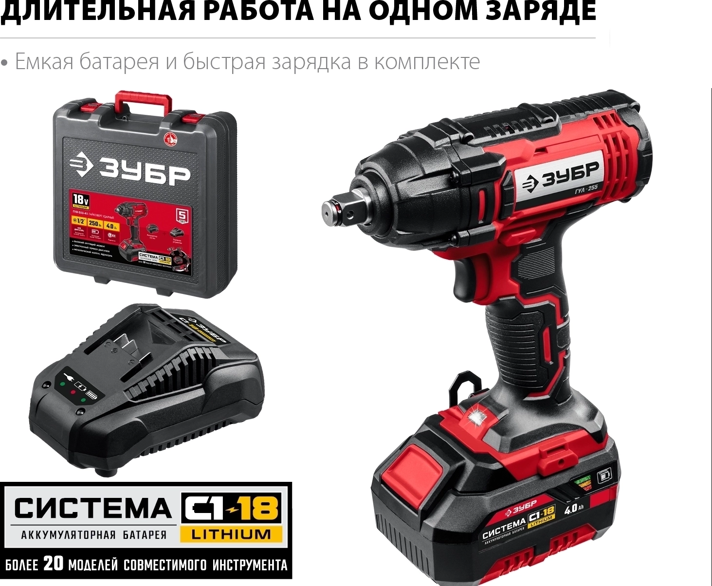 Гайковерт ударный ЗУБР С1-18 18 В 250 Н·м 1 АКБ 4 А·ч