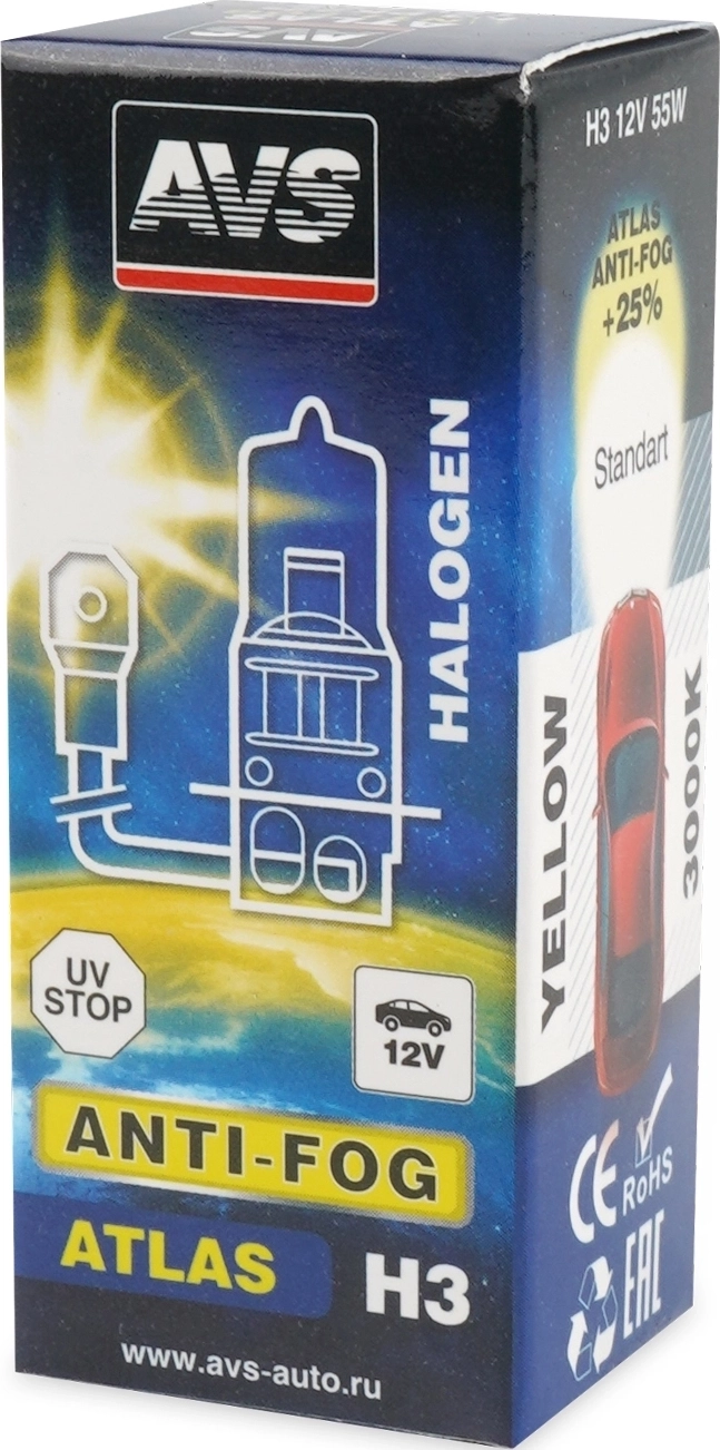 Галогенная лампа AVS ATLAS ANTI-FOG H3 (A78898S) 3000К 12V 55W, 1шт