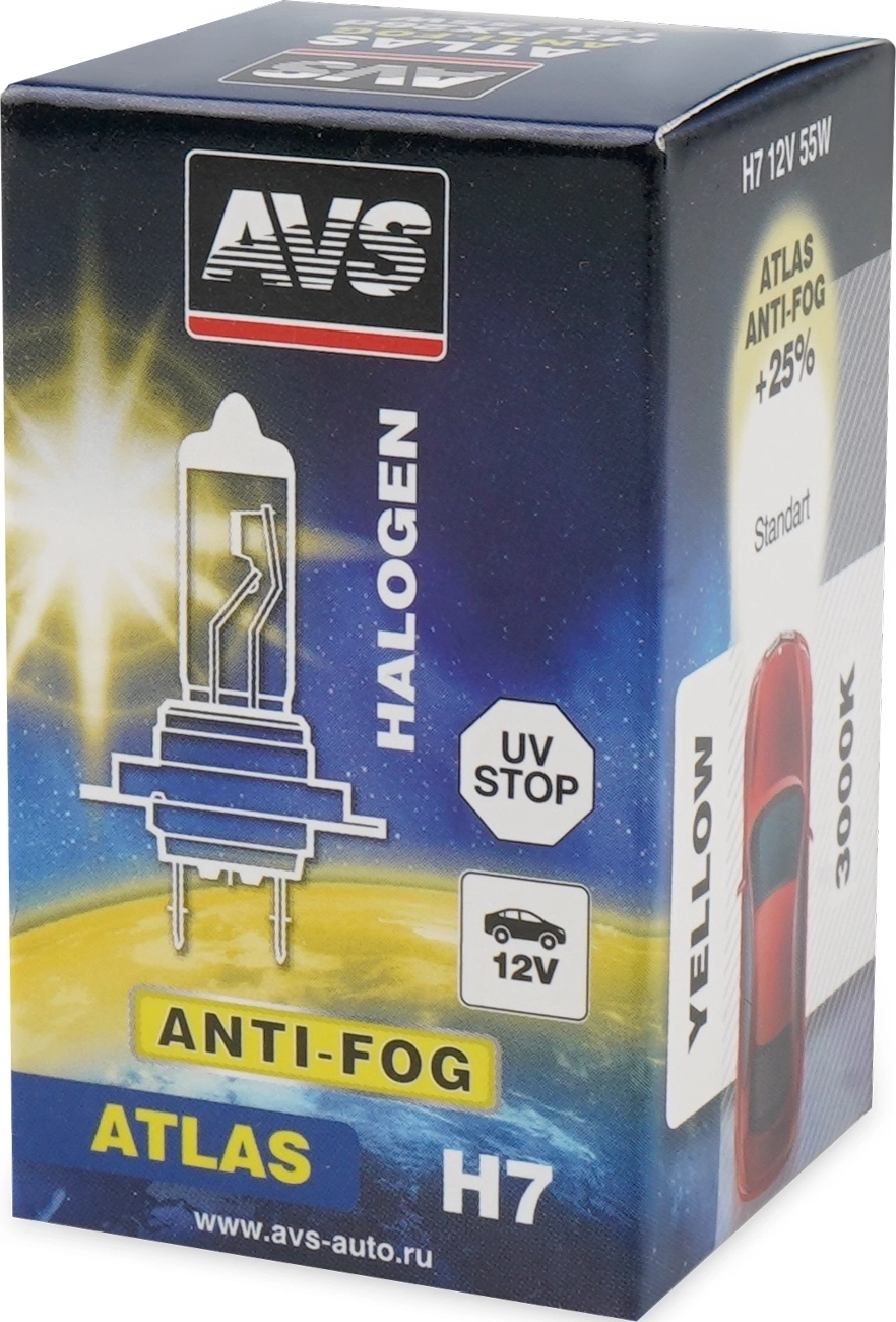 Галогенная лампа AVS ATLAS ANTI-FOG H7 (A78900S) 3000К 12V 55W, 1шт