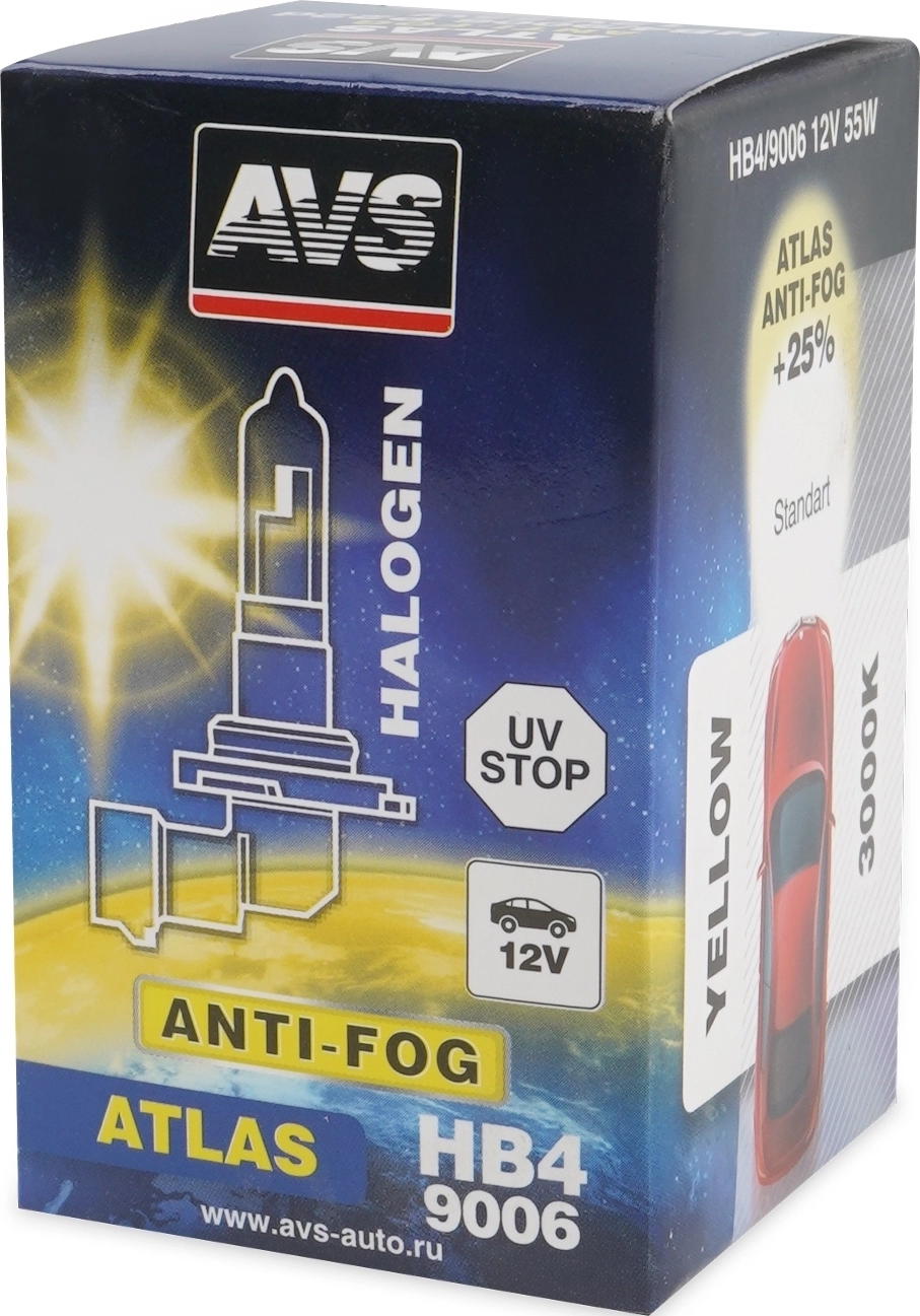 Галогенная лампа AVS ATLAS ANTI-FOG HB4/9006 (A07027S) 3000К 12V 55W, 1шт